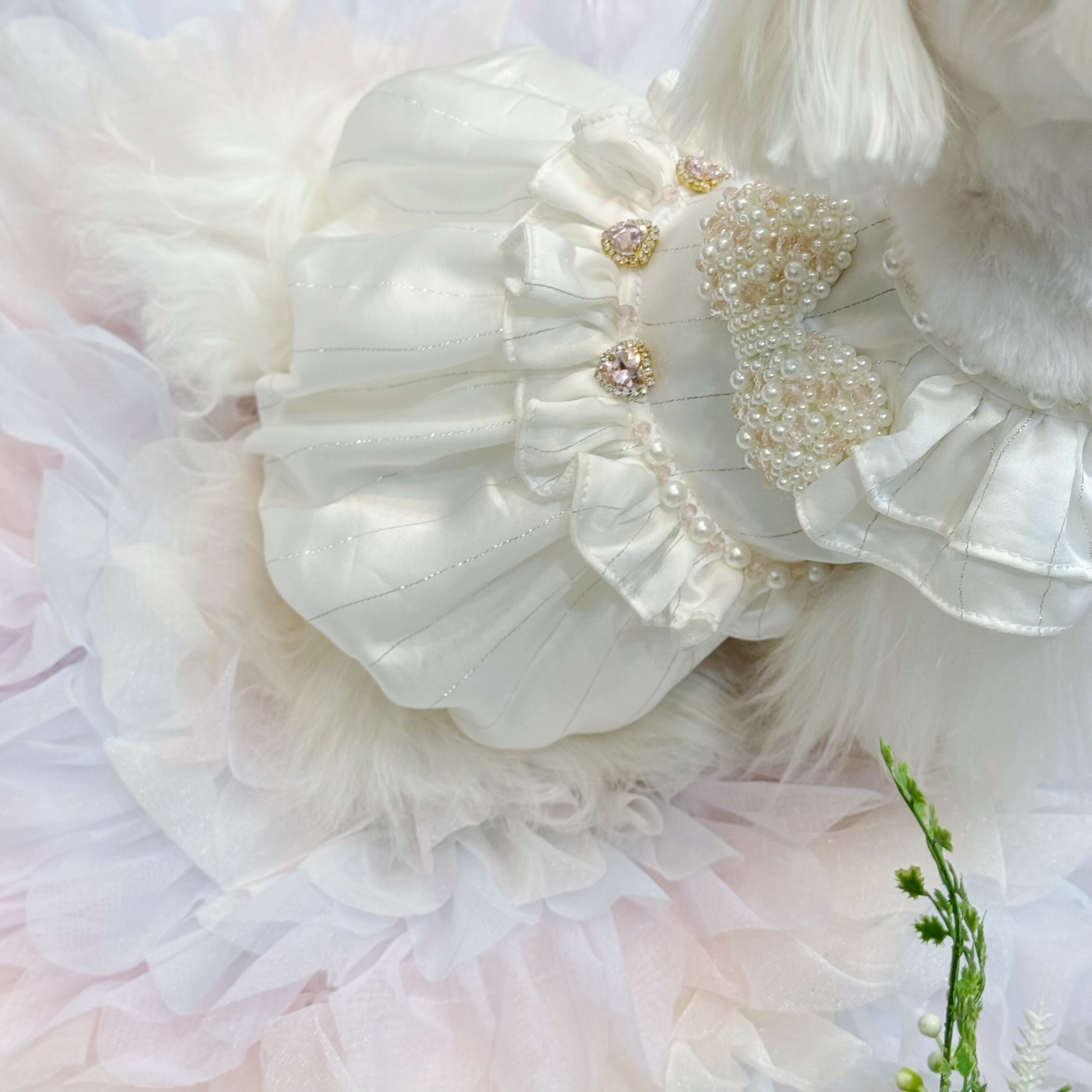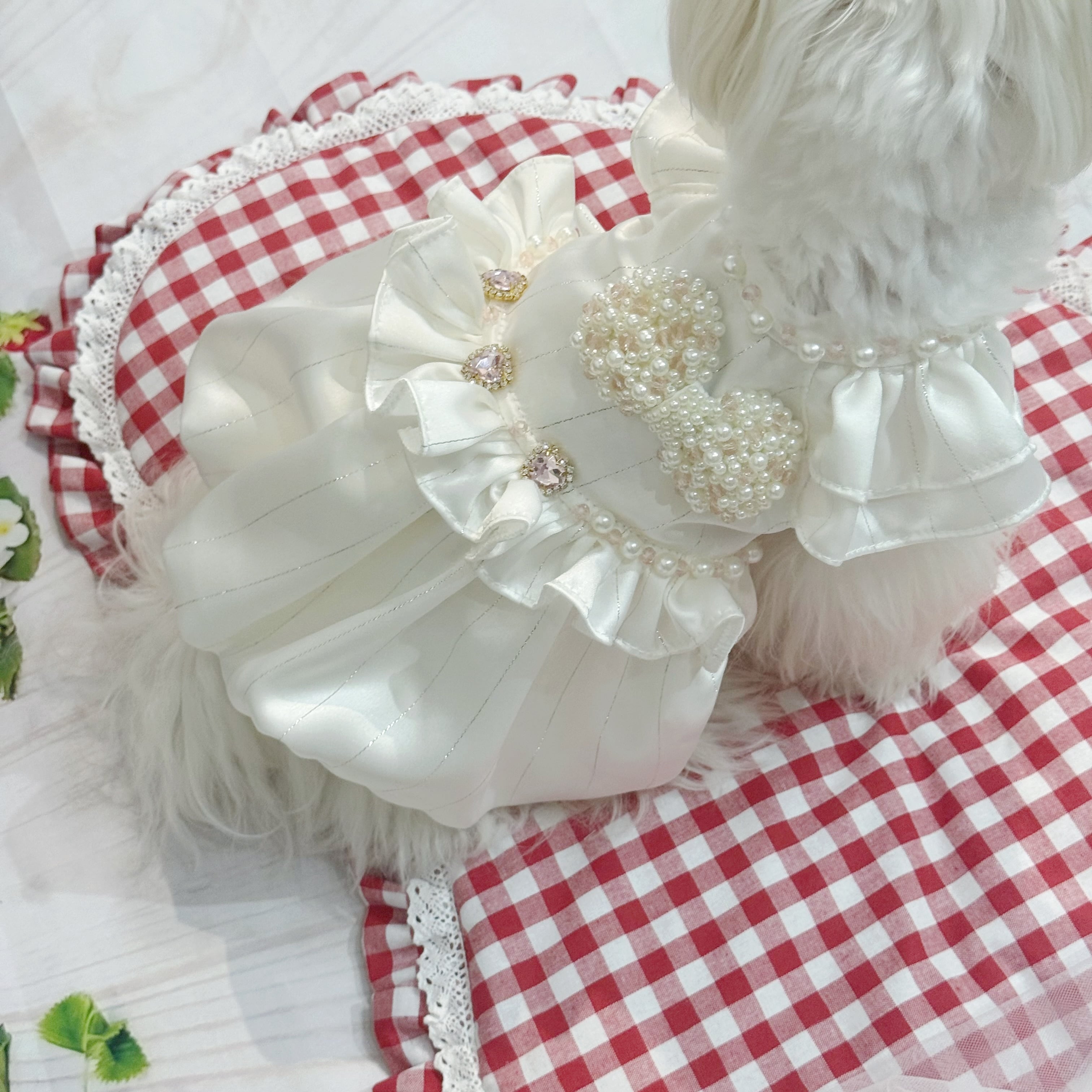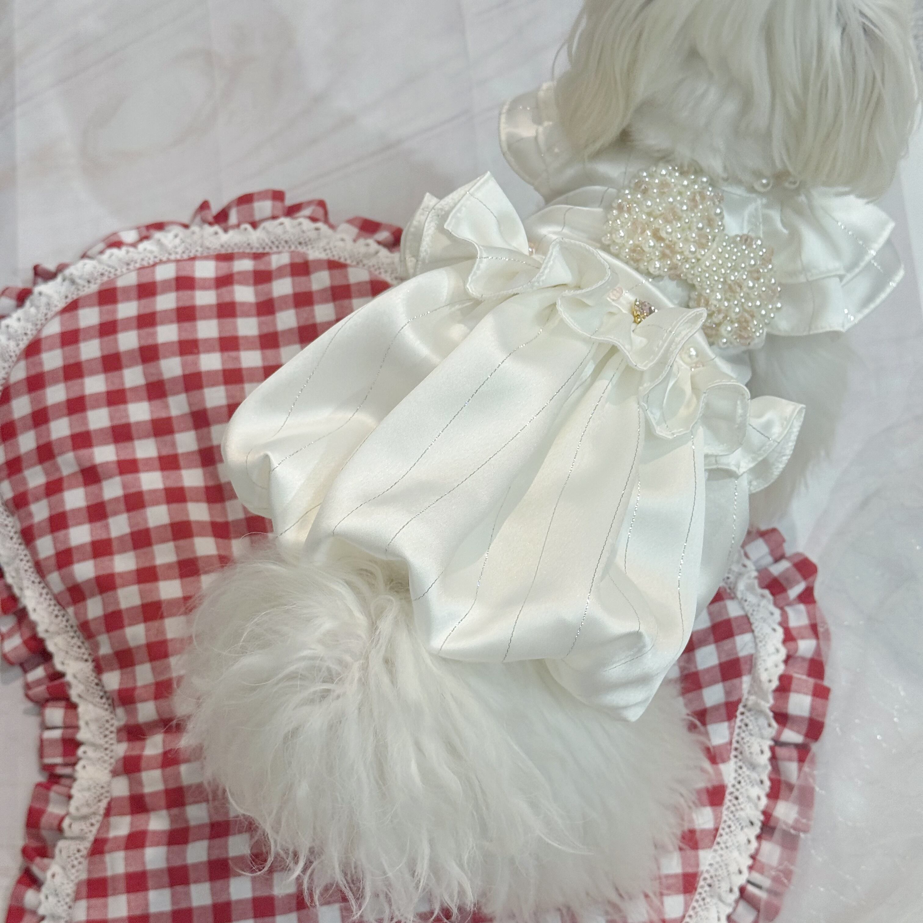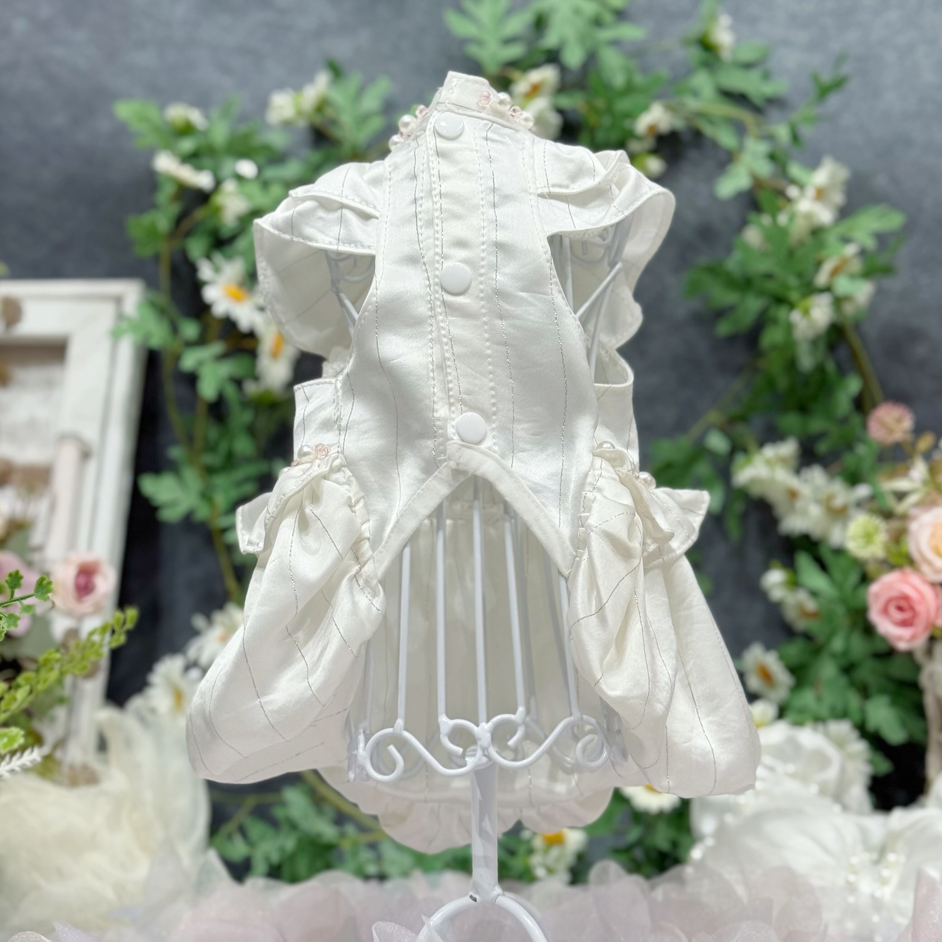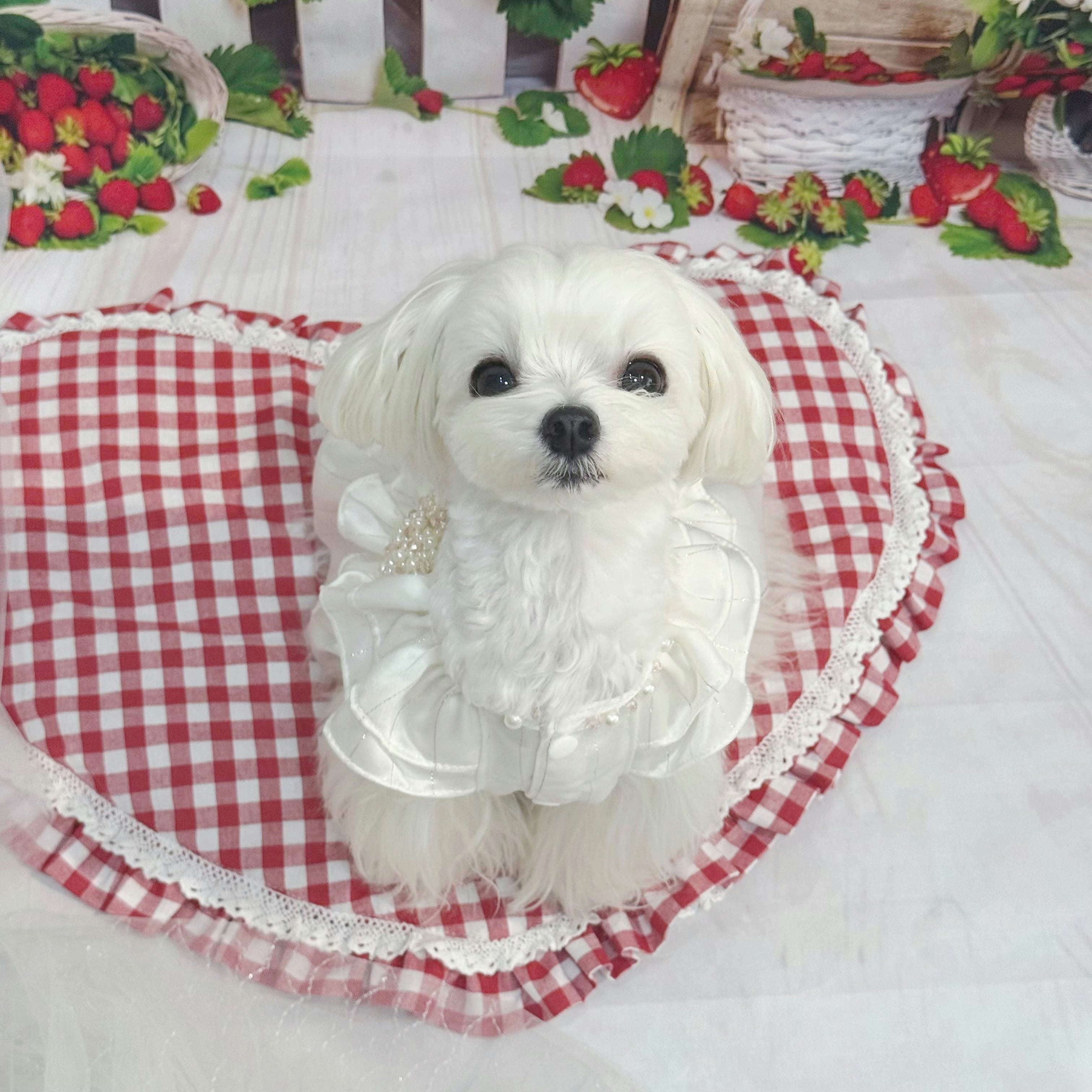 光に当てると高級感溢れる柔らかい光沢が広がり、ガラスのような艶感がとても魅力的〜色合いは上品さを極めた柔らかいホワイトで、愛犬を明るく引き立ててくれる♡