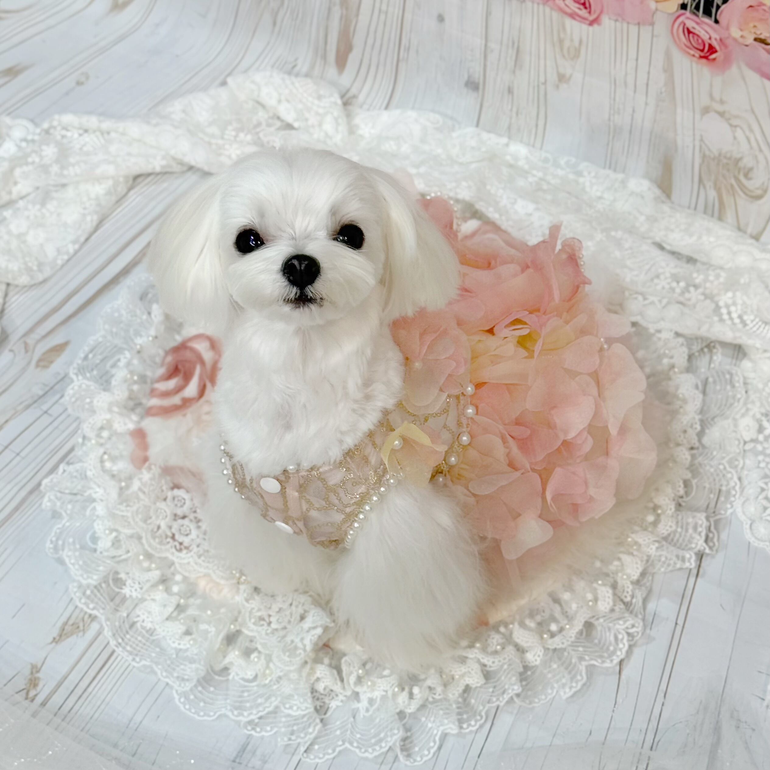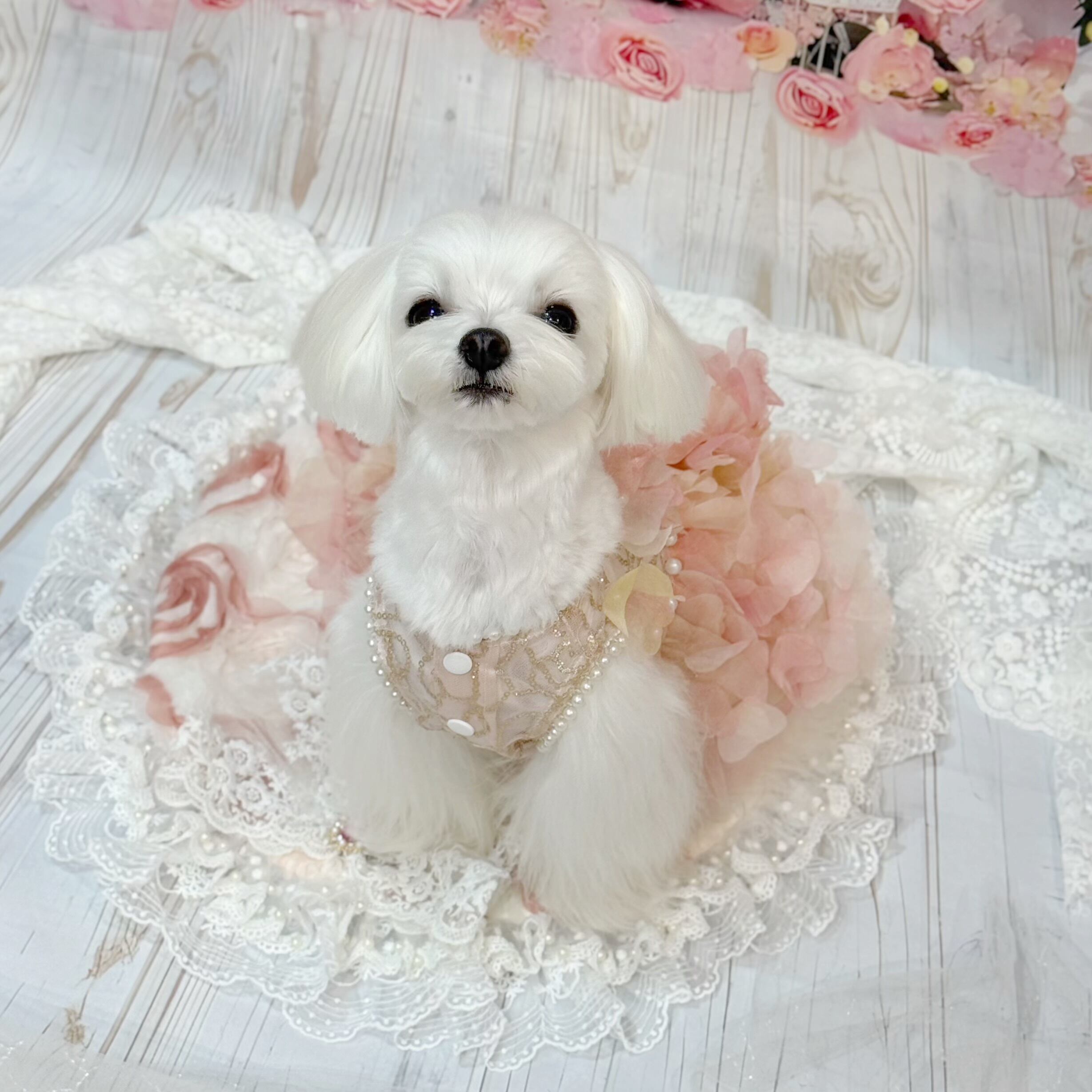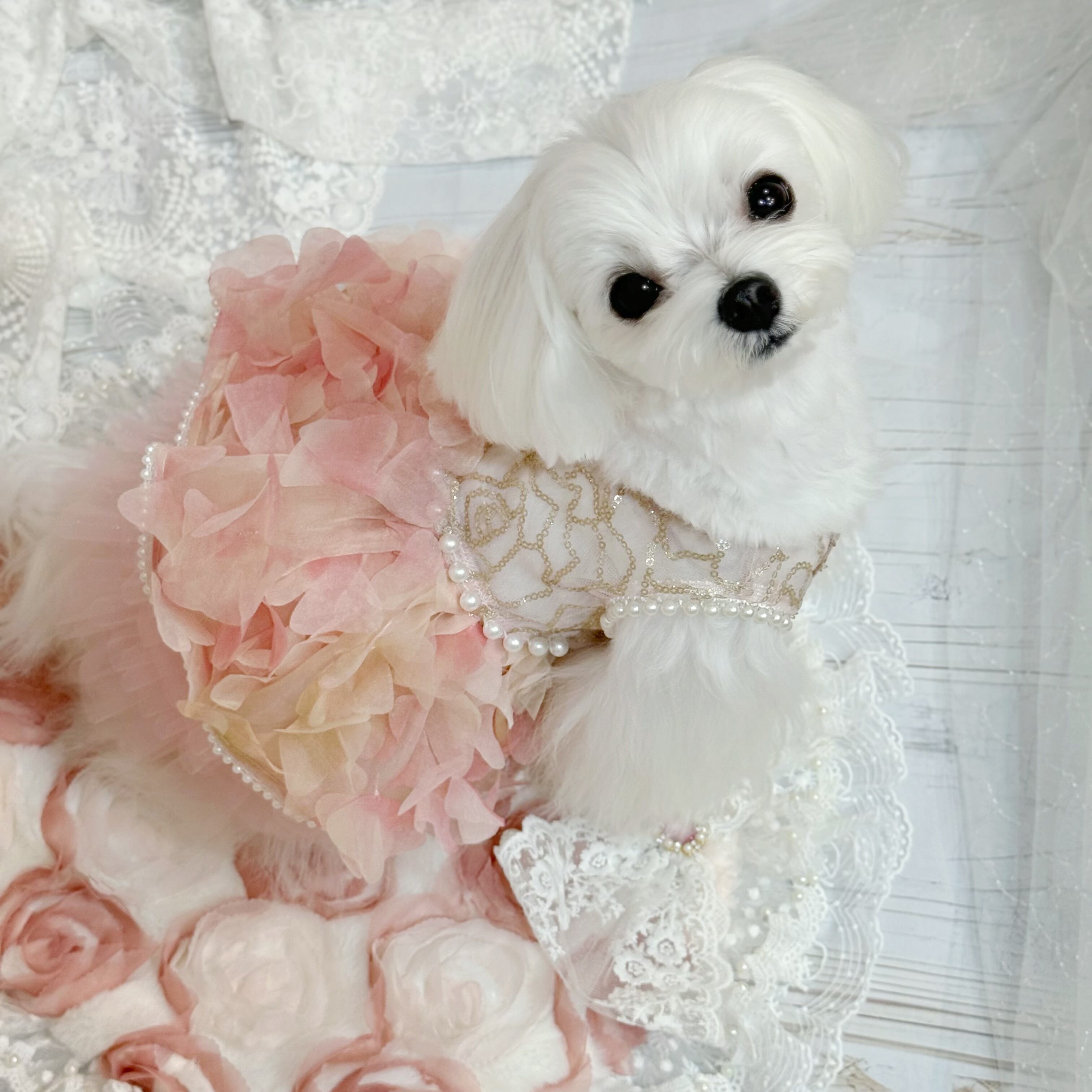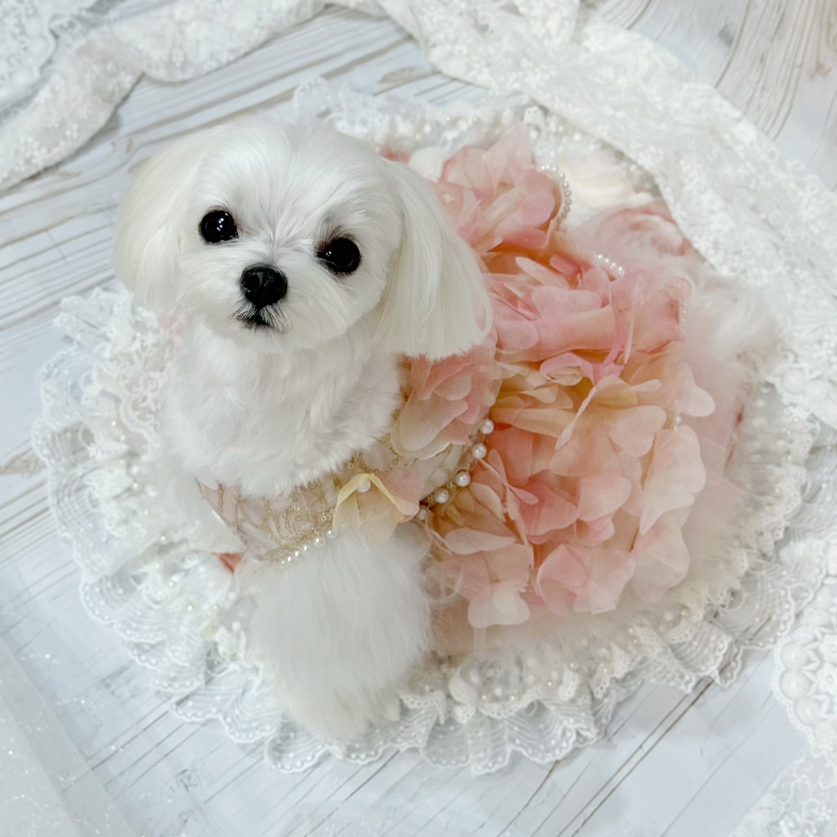 花嫁ドレスとしても、またはちょっとした特別な日のお姫様風コーデにもぴったり!愛犬はこんなドレスを着ていれば、どんな場面でも絶対に注目されること間違いなしです✨