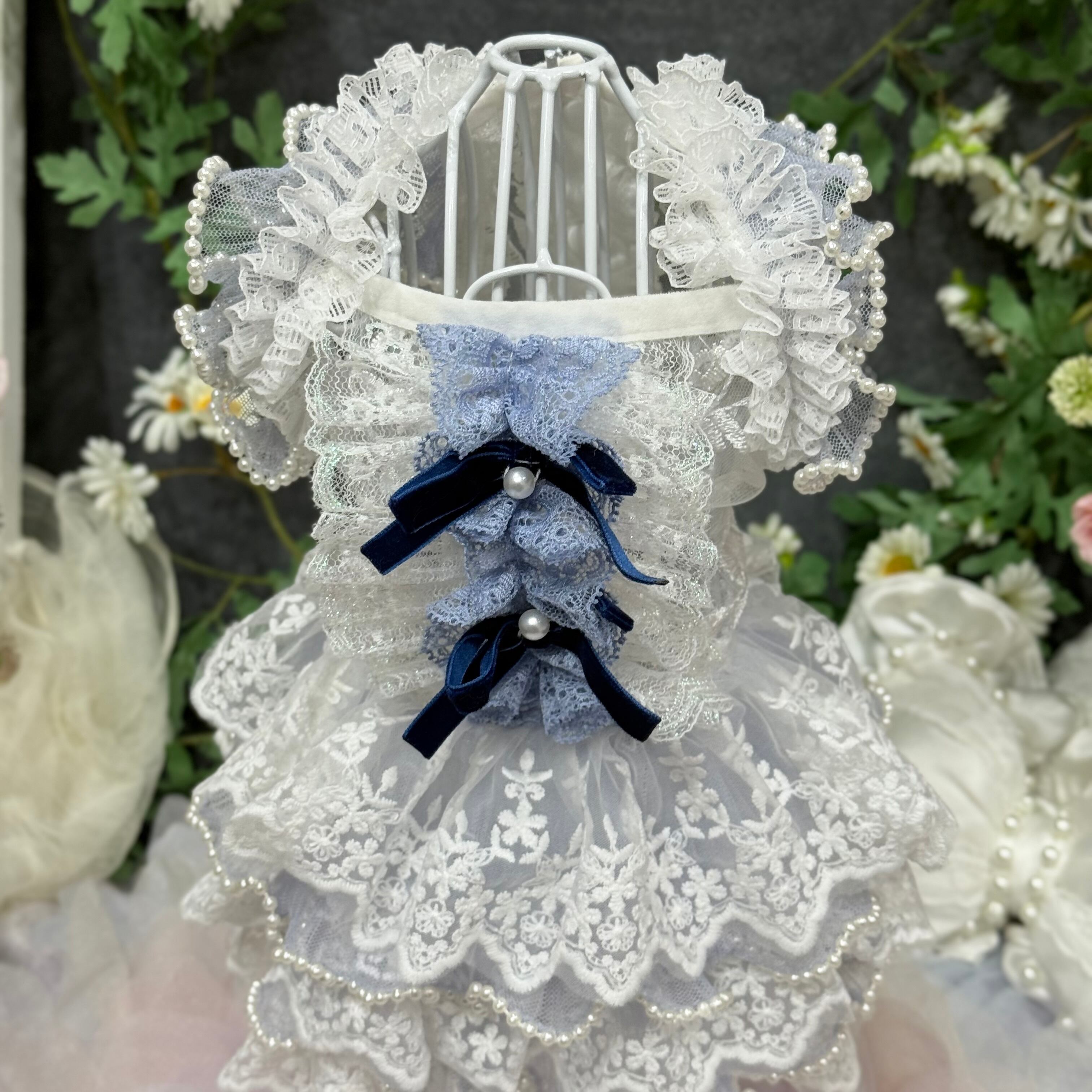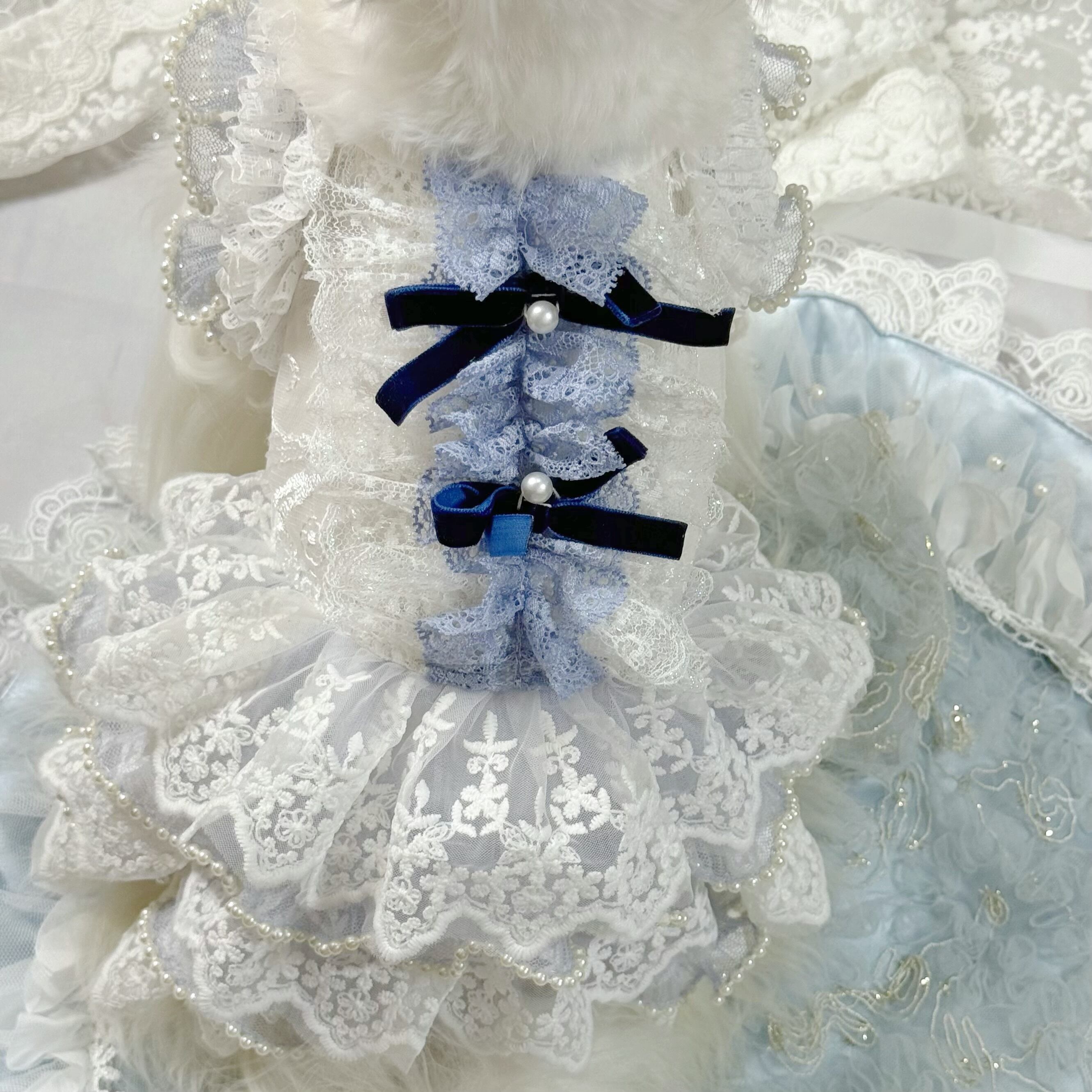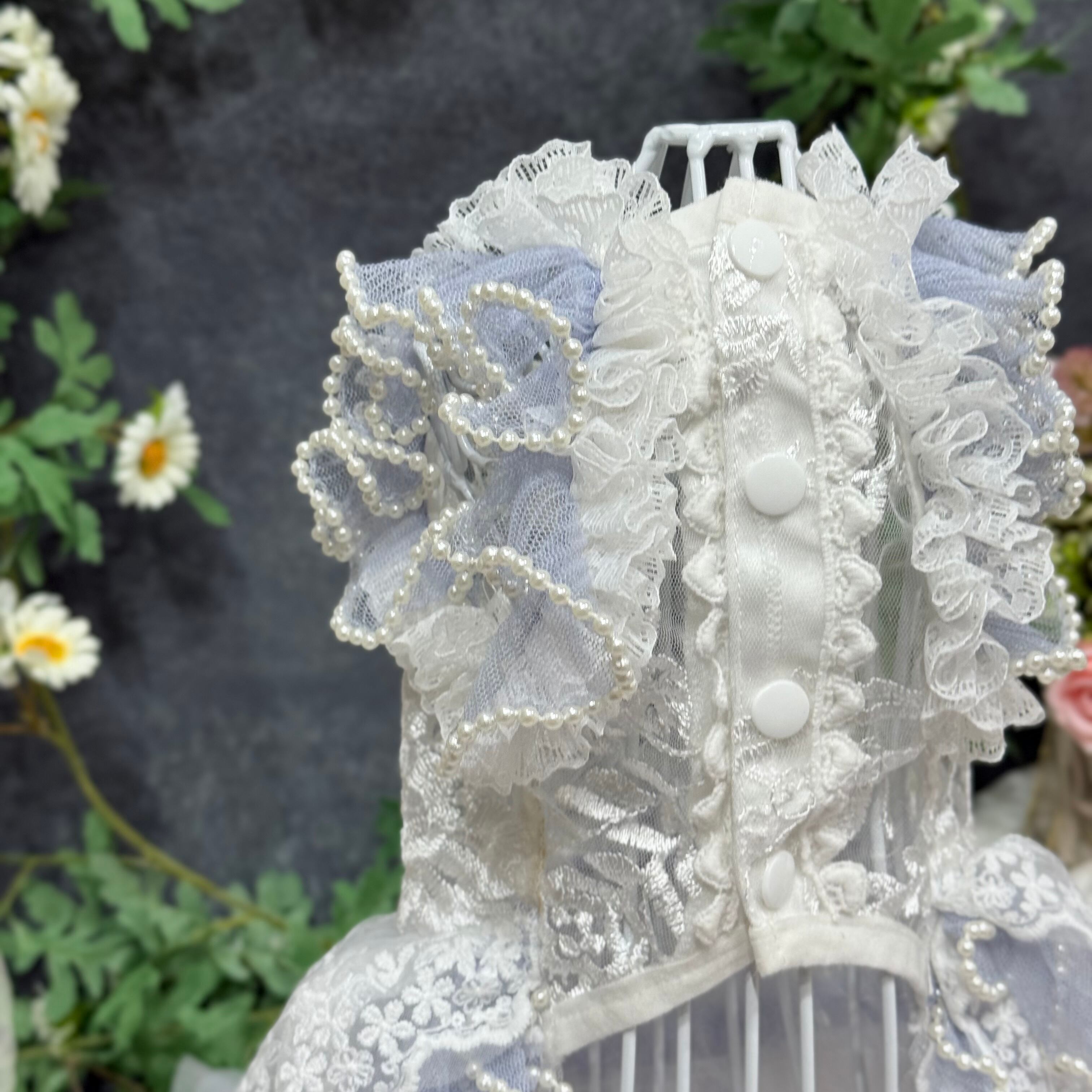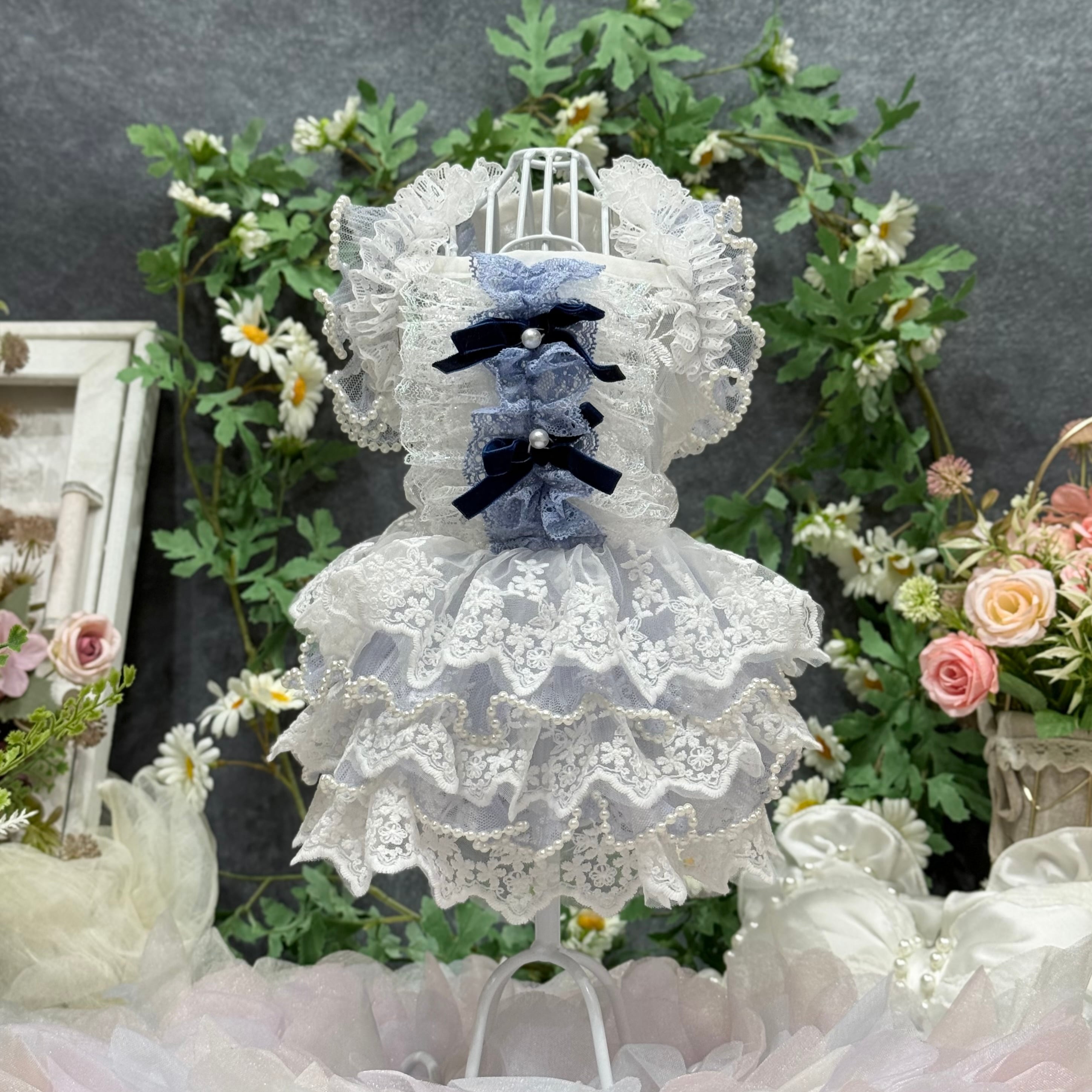 ✨ 淡いブルーと白いレースが绝妙に混ざり合ったこのドレス♡