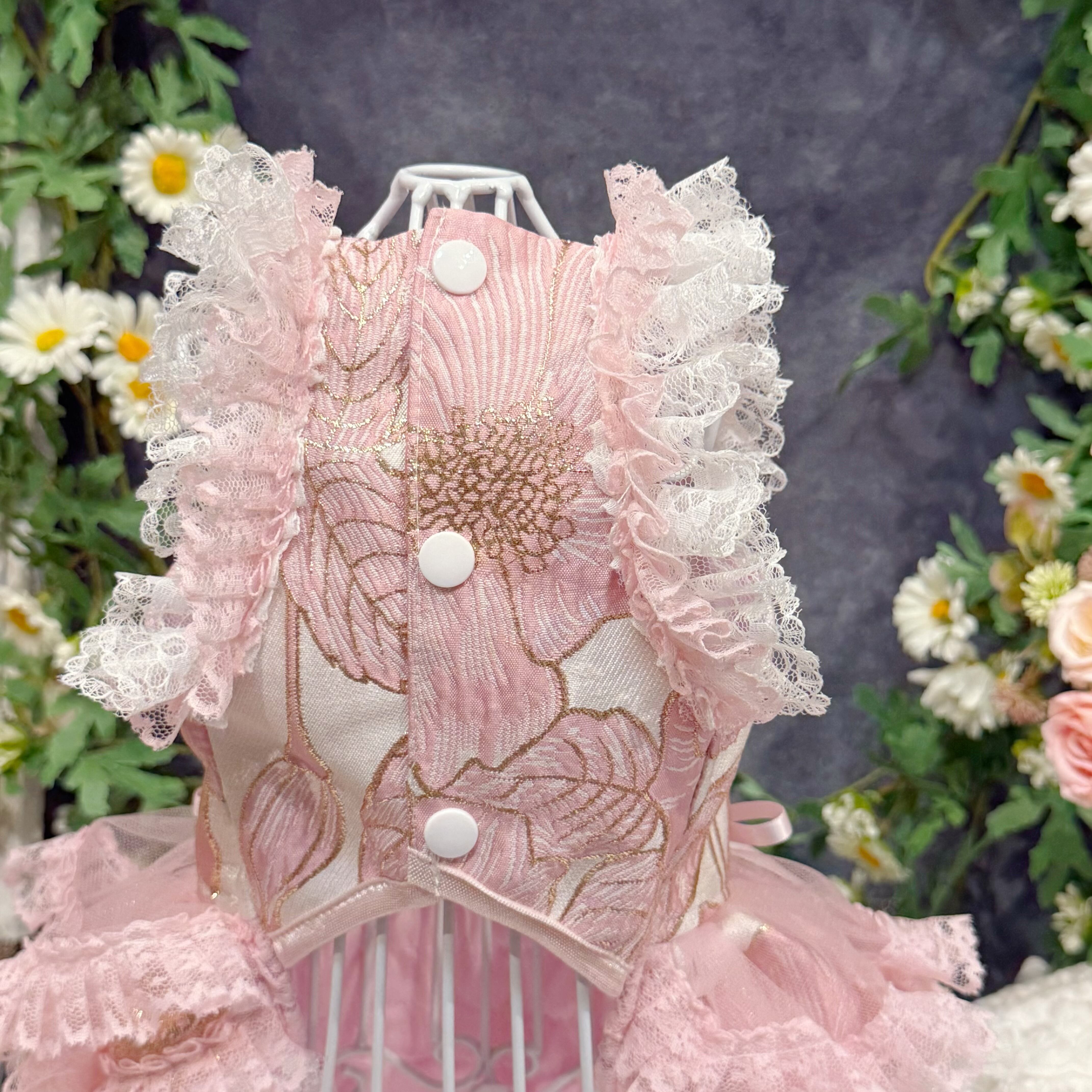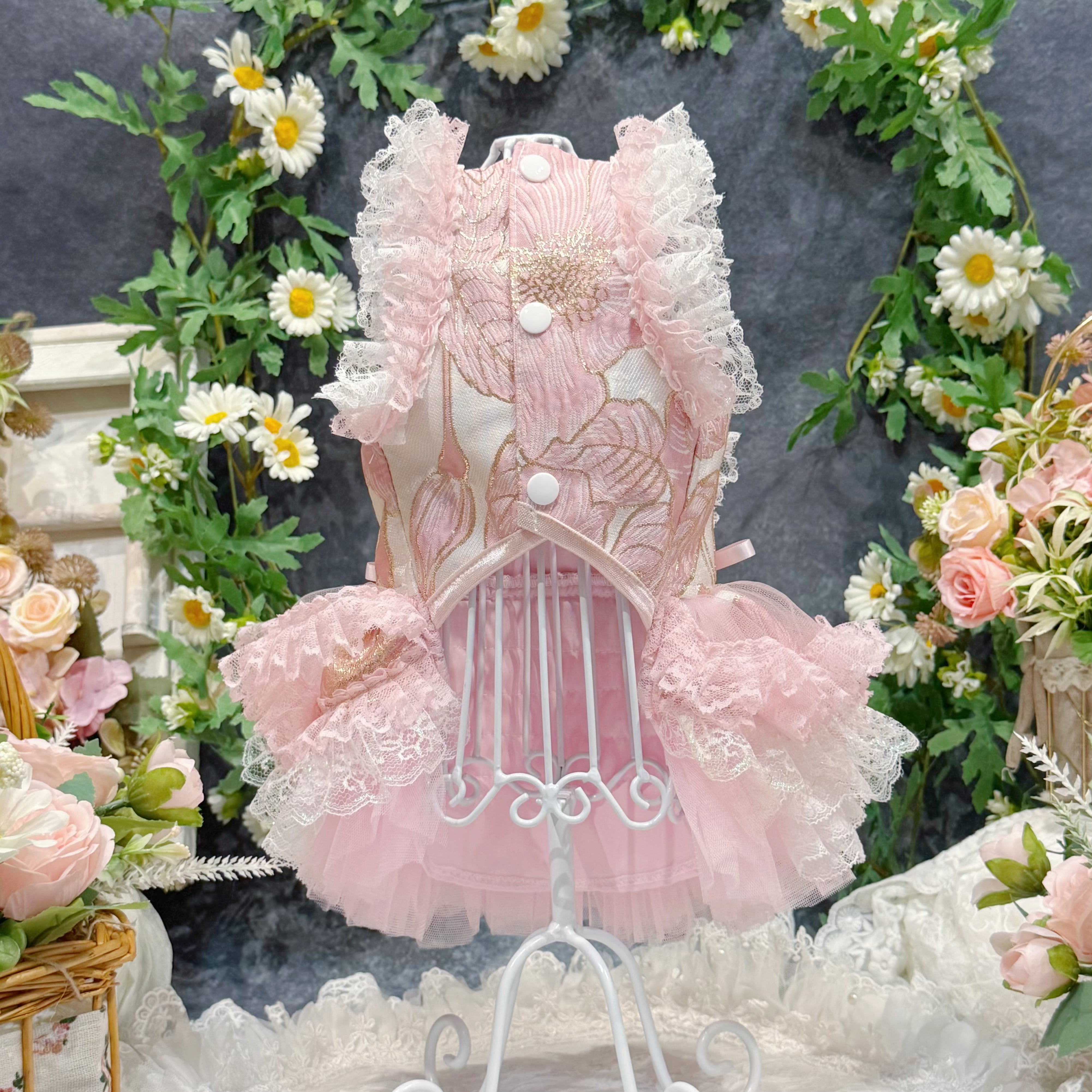 袖は甘いレースフリルデザインで、重なり重なって小さな花びらのようで、愛犬の足をもっとピンクっぽく見せてくれます~ スカートも多層のレースを重ねて、ふっくらとした感じが十分出て、歩くたびにゆらゆらと動いて、まるで小さなお姫様が踊っているようで、可愛さに優雅さまで加えられています~