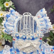 ウエストには大きなレースのリボンが飾ってあって、その真ん中にブルーのハート形ストーンがちゃんとついているのが、まさに“キュートの極み”!一瞬でドレスの雰囲気を引き上げてくれます❤︎