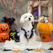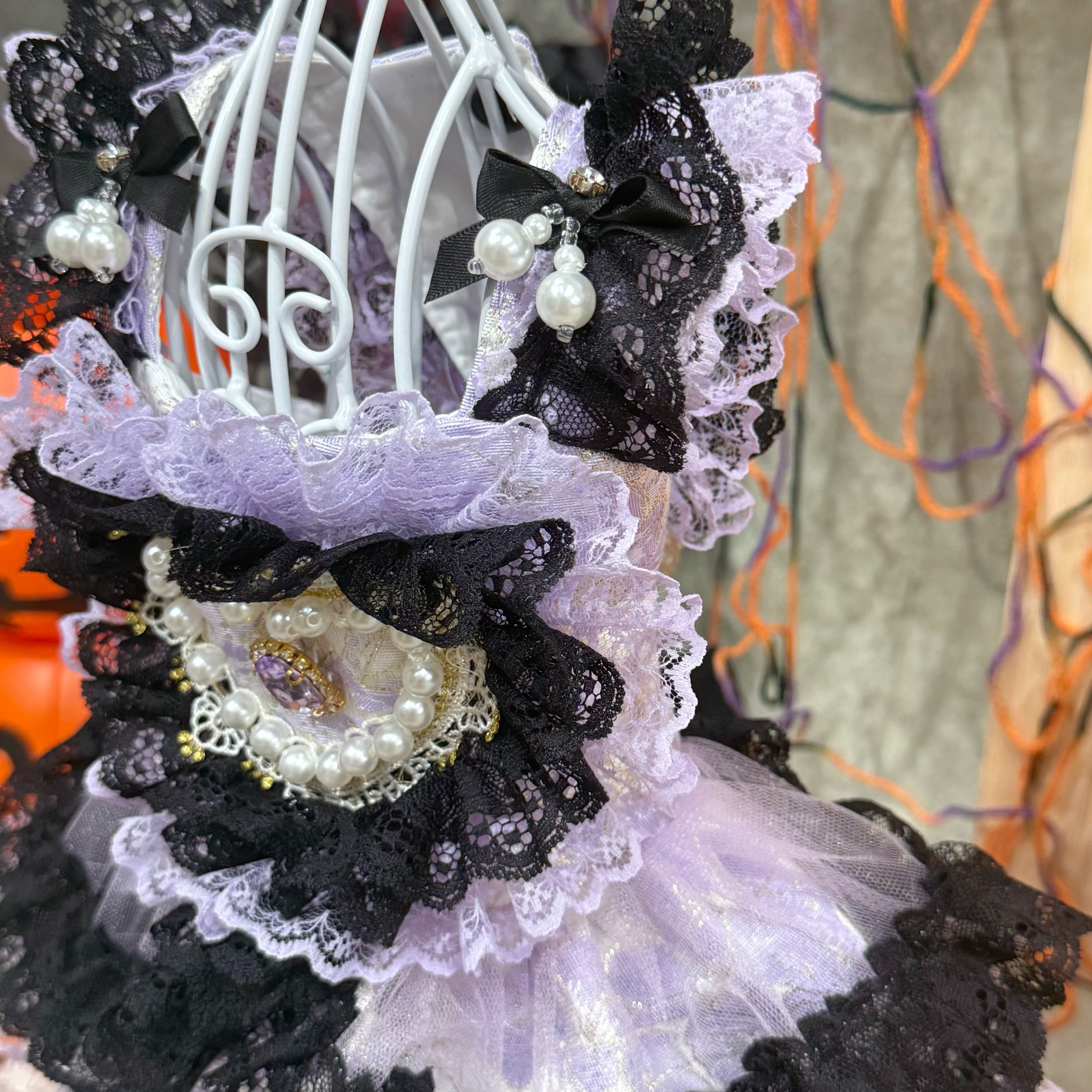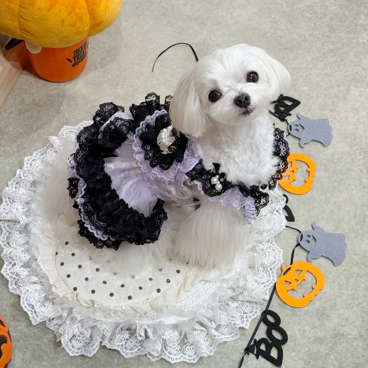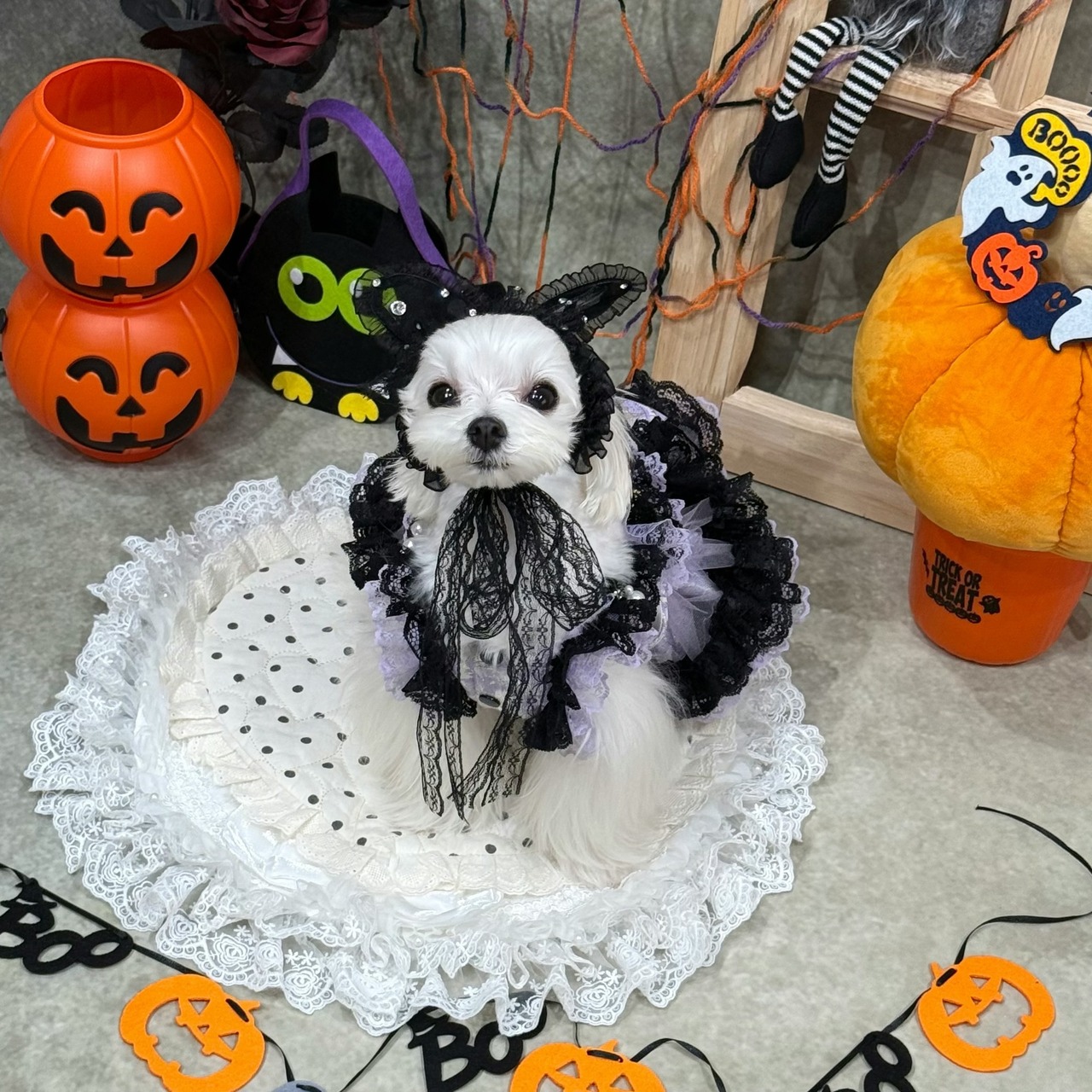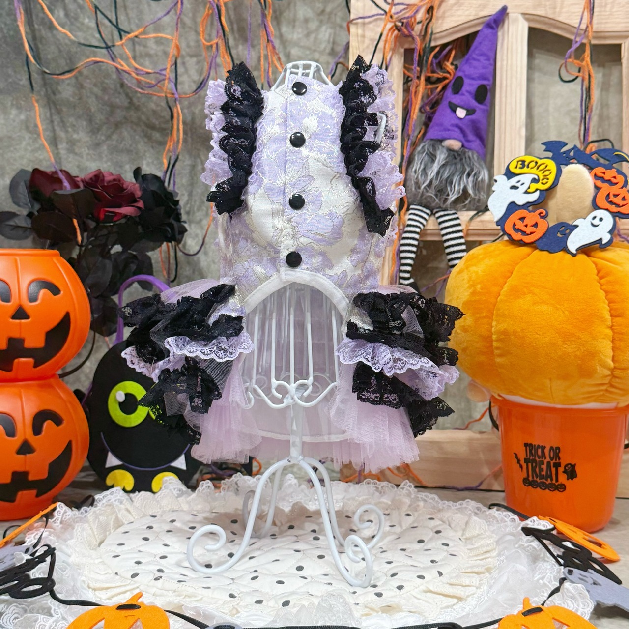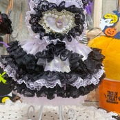 黒と紫のコンビネーションがとても雰囲気を出していて、着せるだけですぐにハロウィンムードが高まります!