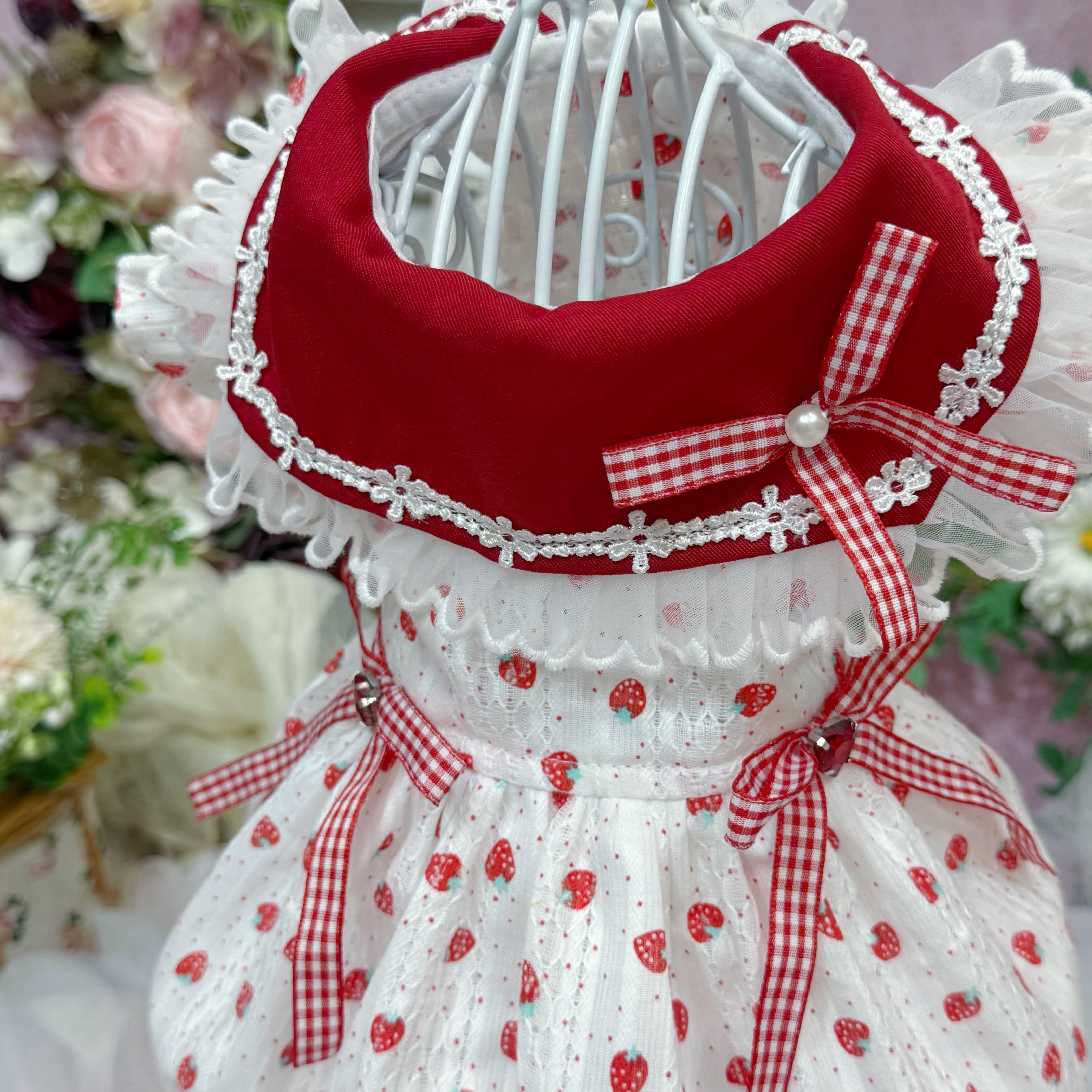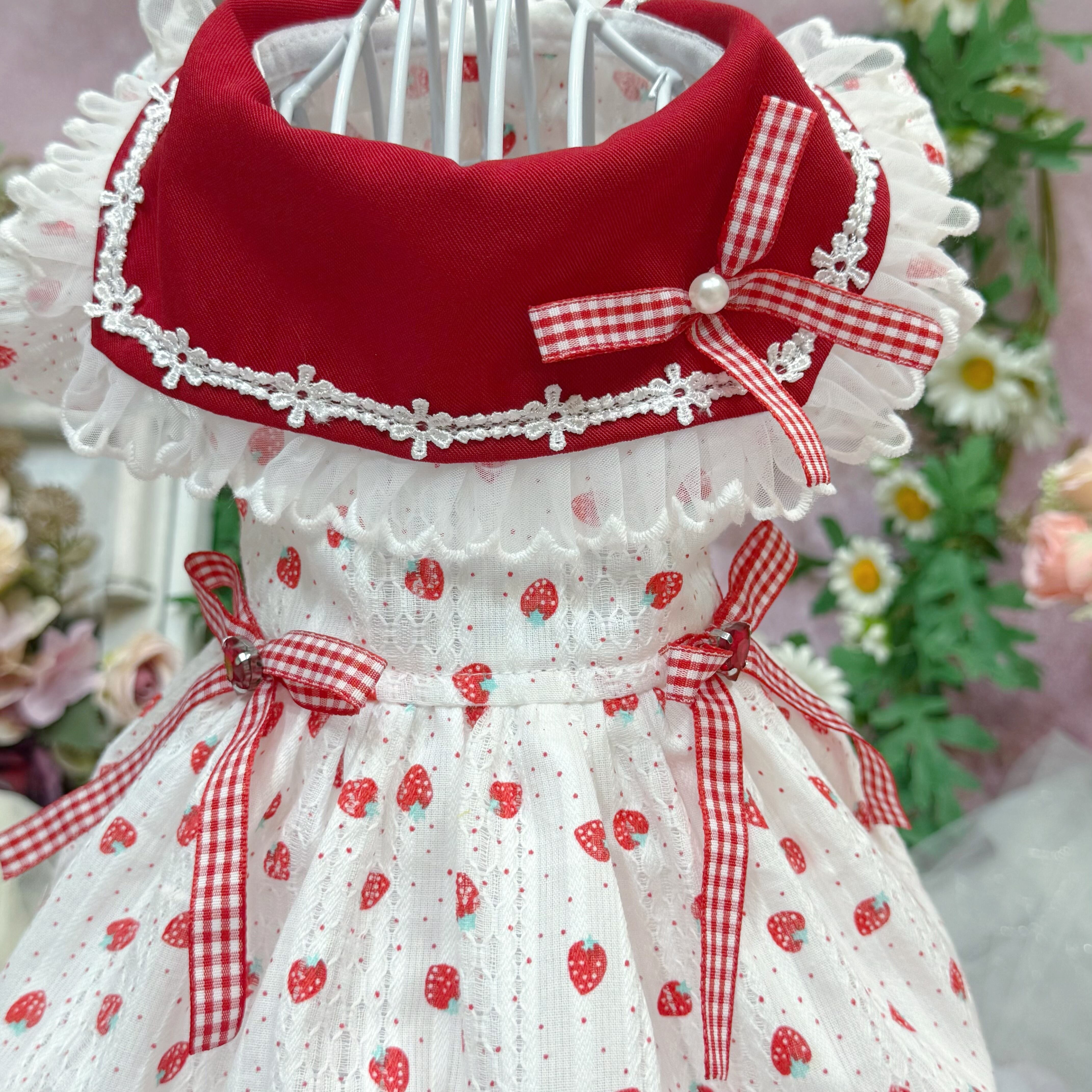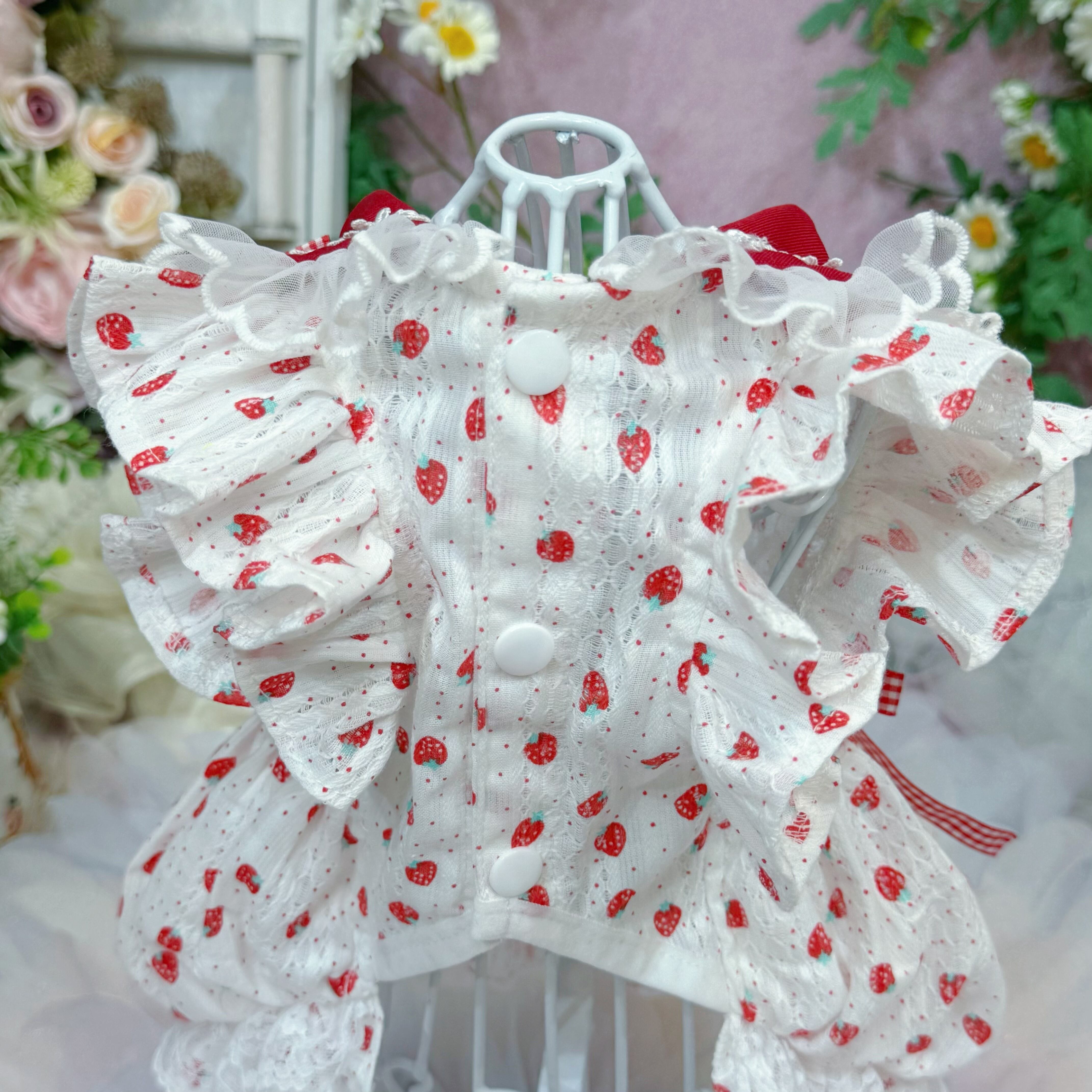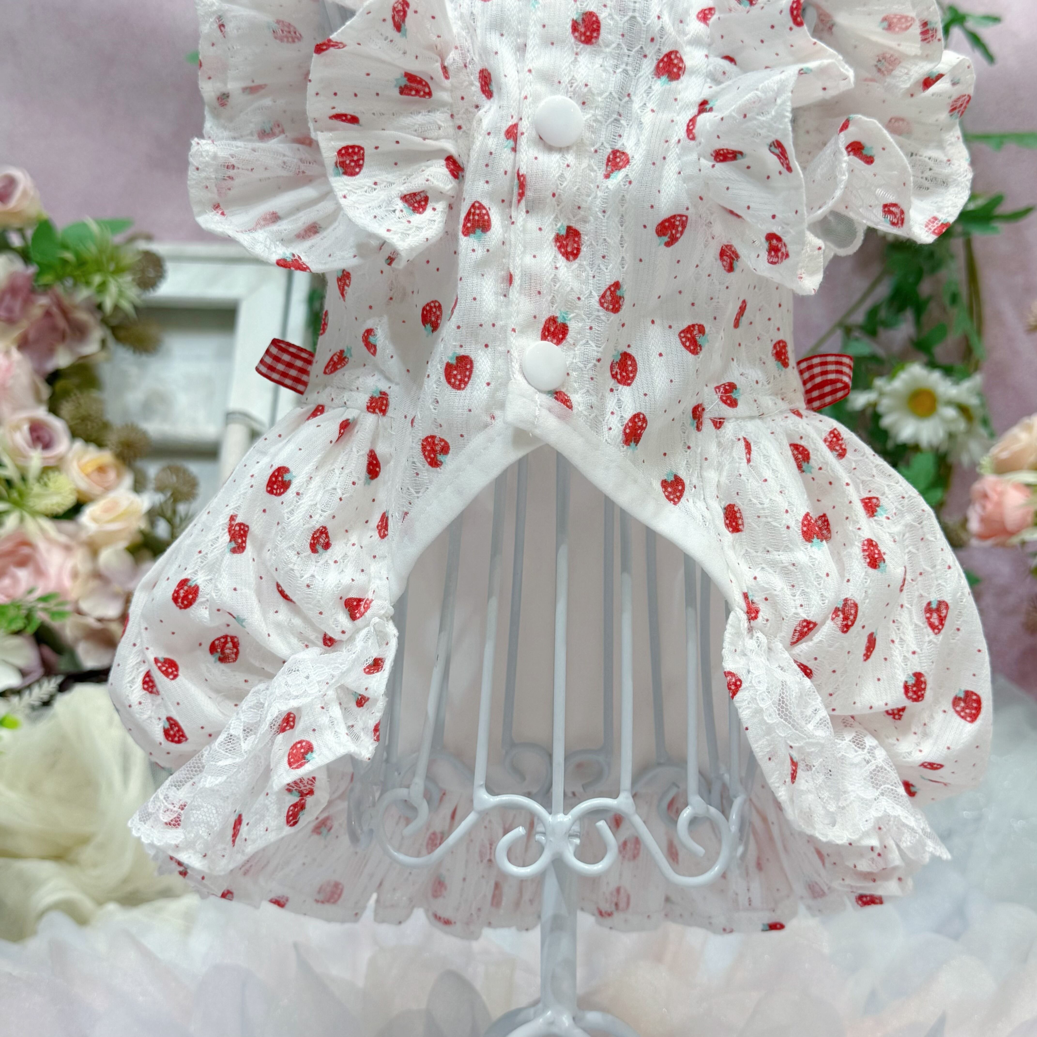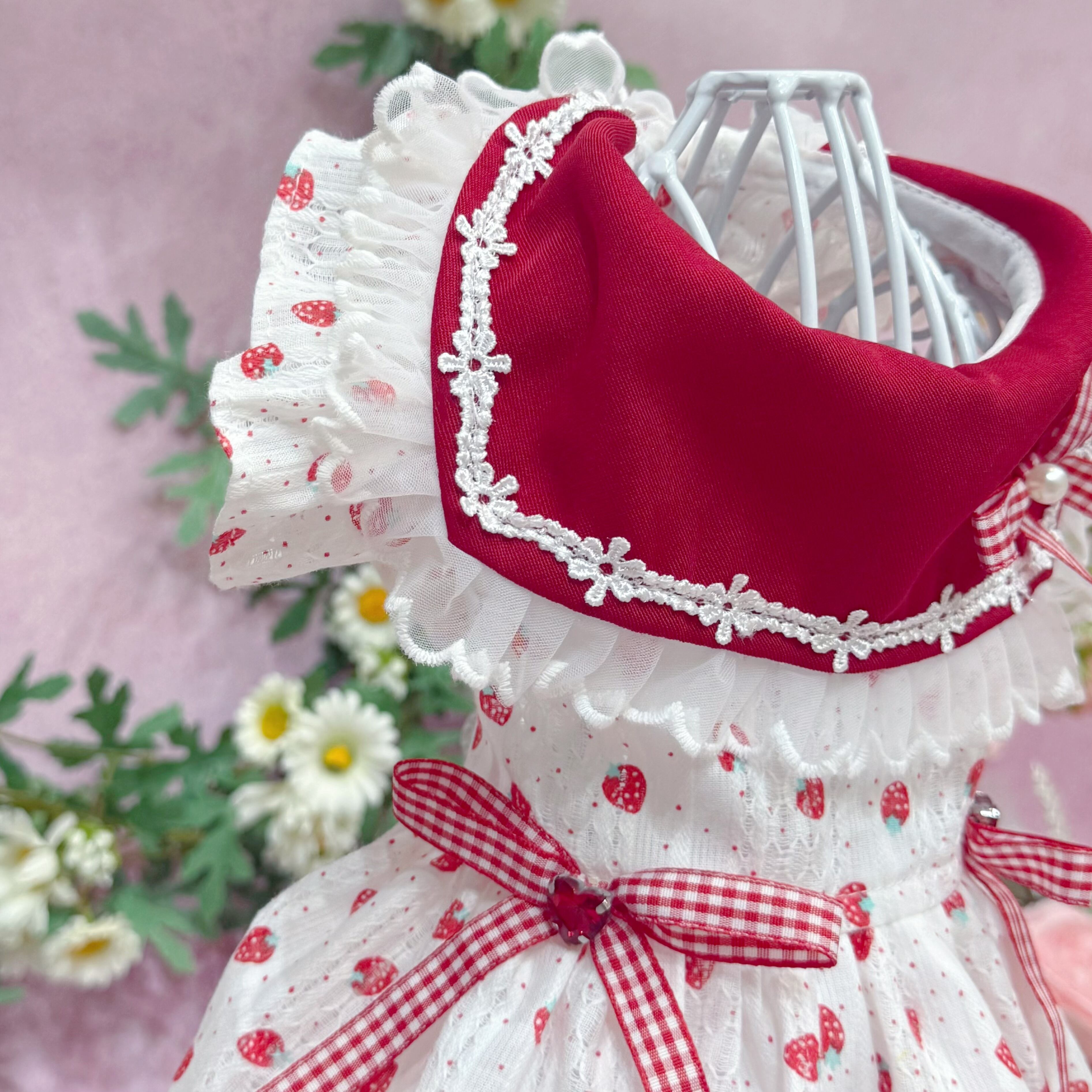 柄は超絶かわいいいちご柄がメインで、さらに生地にはドット柄と立体感満点のレース柄まで混ざっていて、可愛さがエクストラUP!