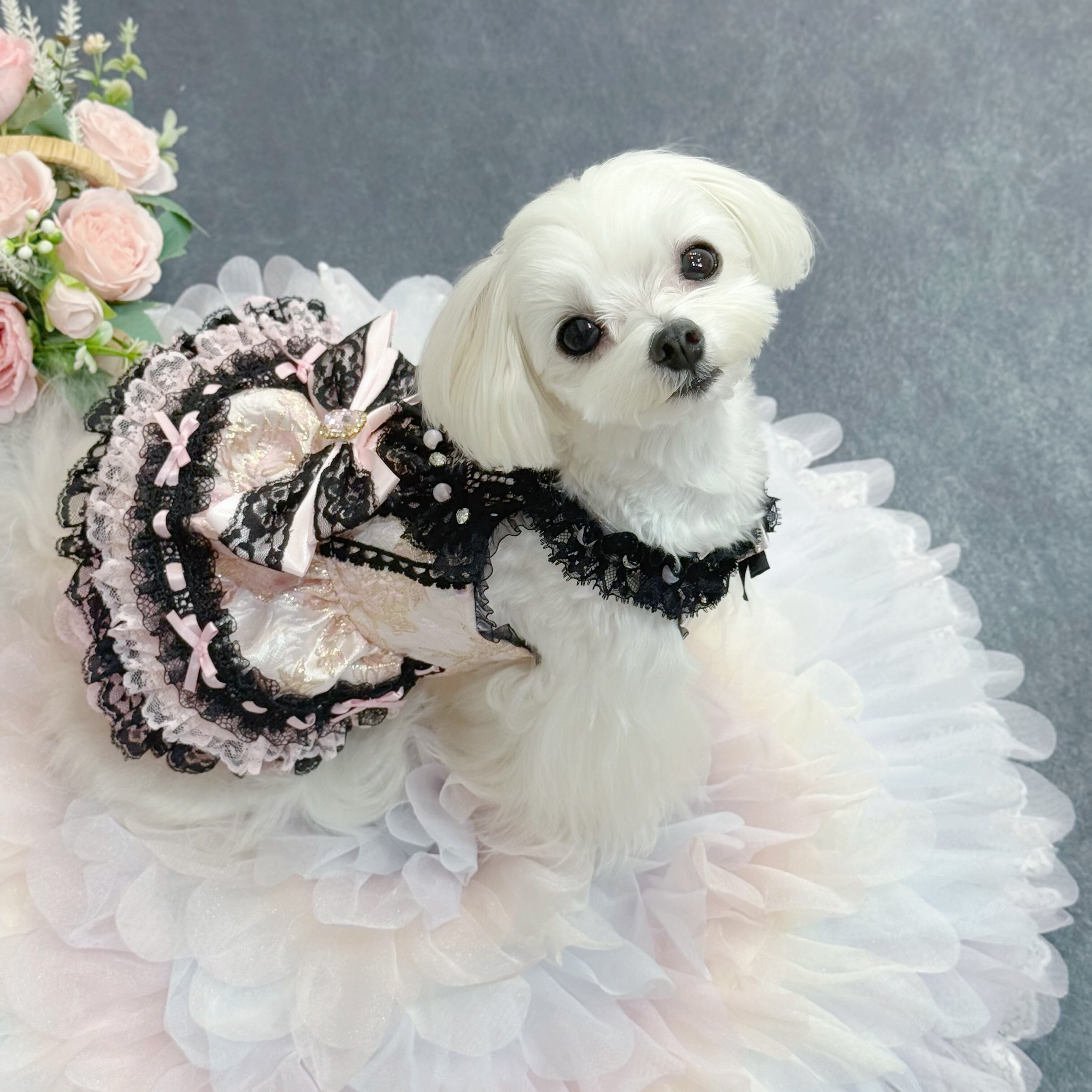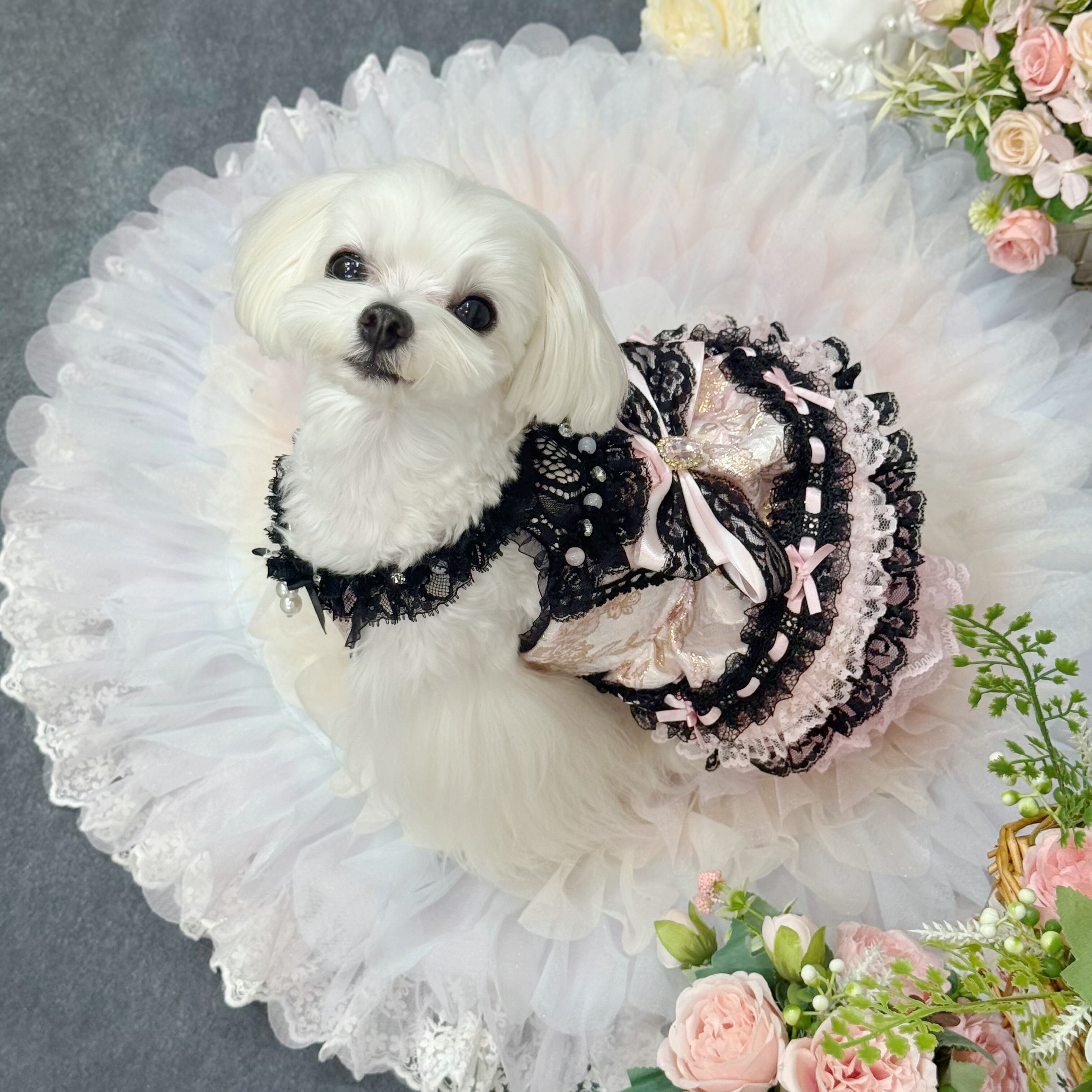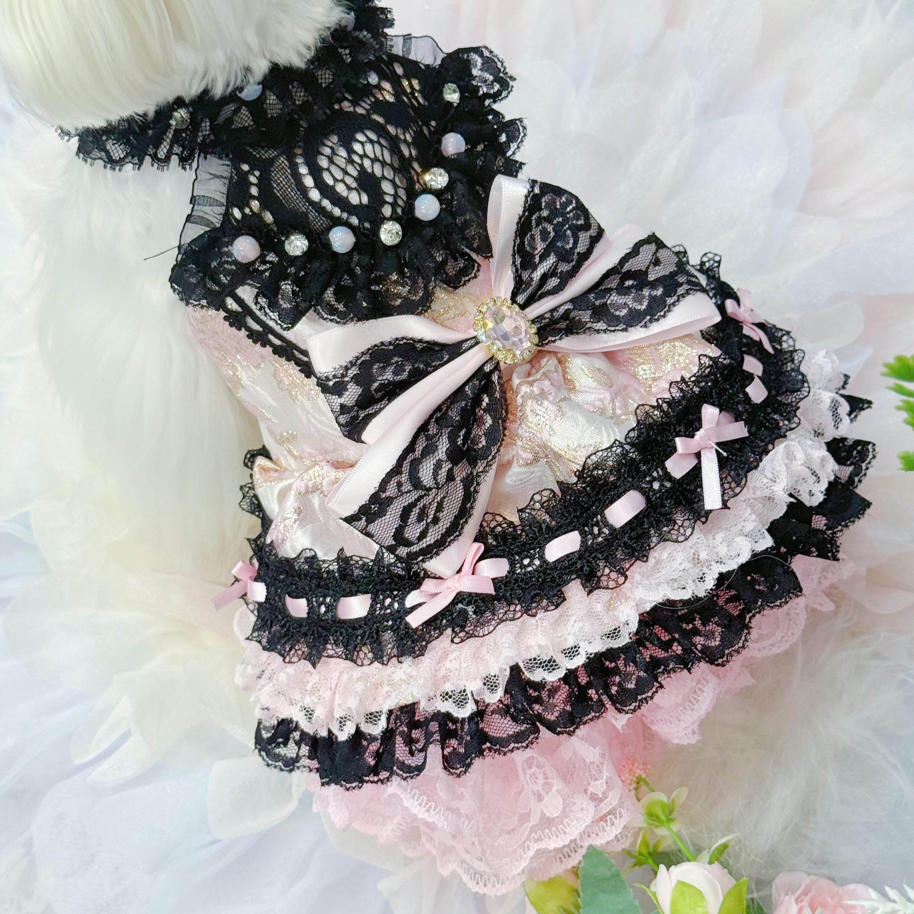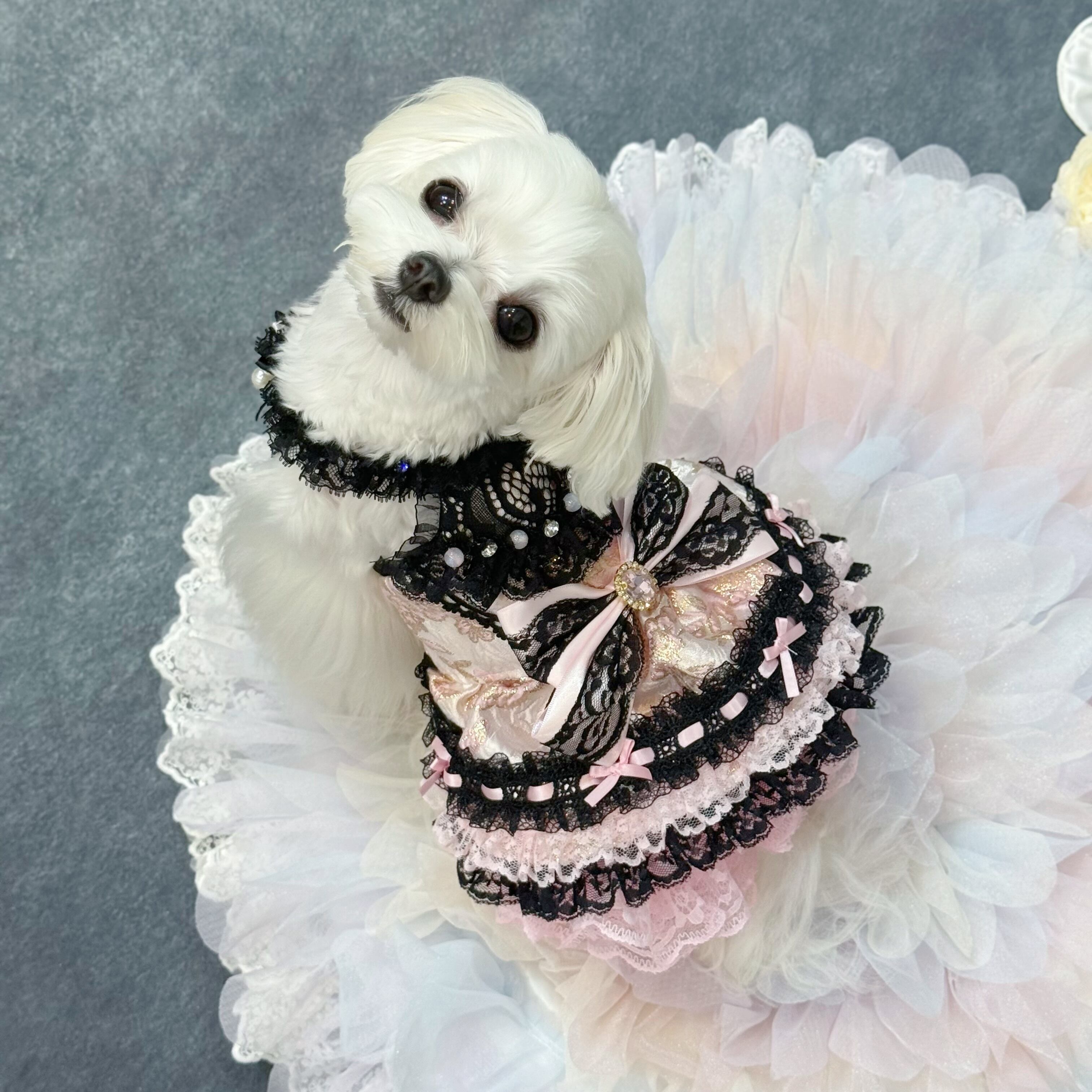 ウエストには大きなリボンを飾り、甘さを一層増やすと同時に、調節が可能で愛犬の体にフィットさせやすい仕様になっています❤︎