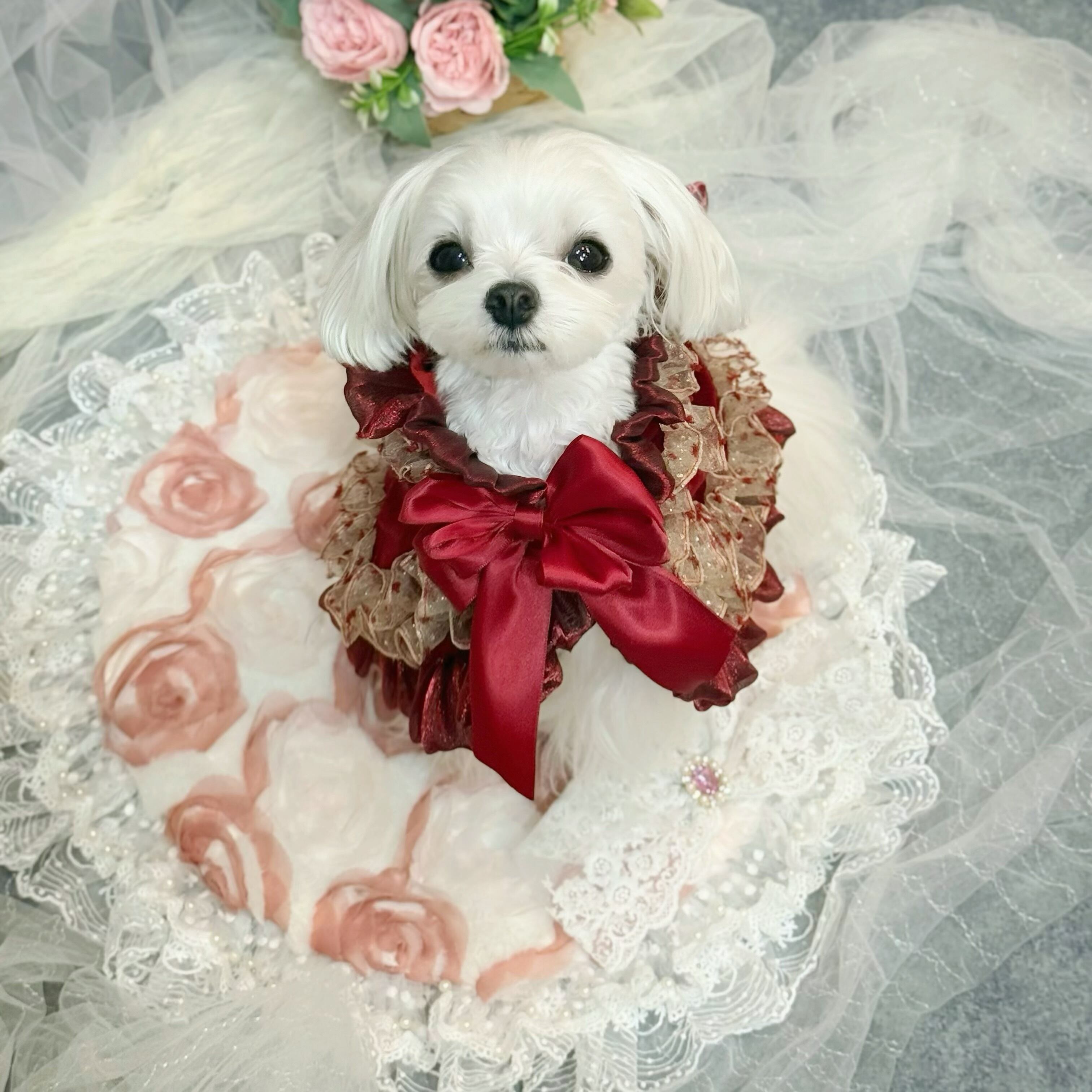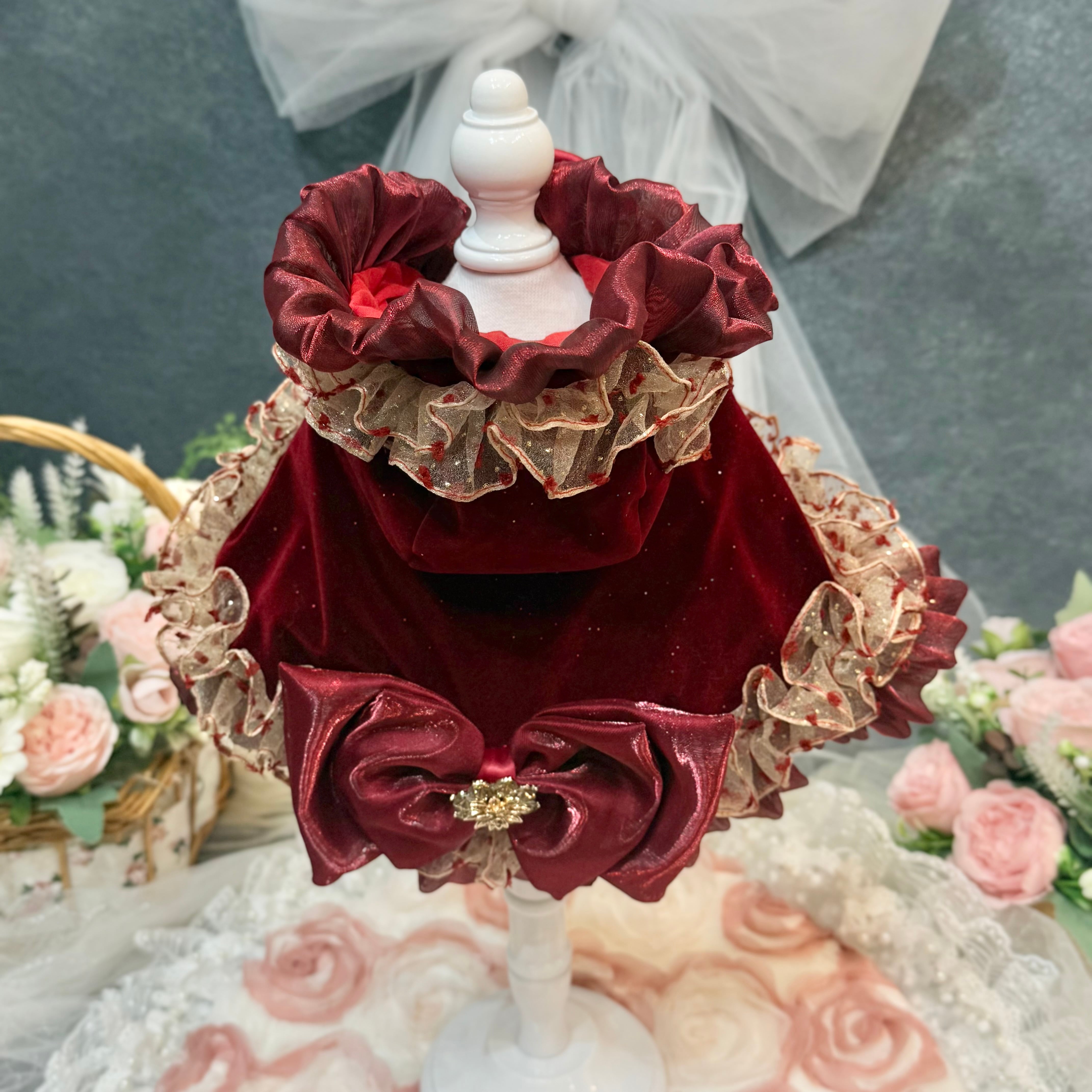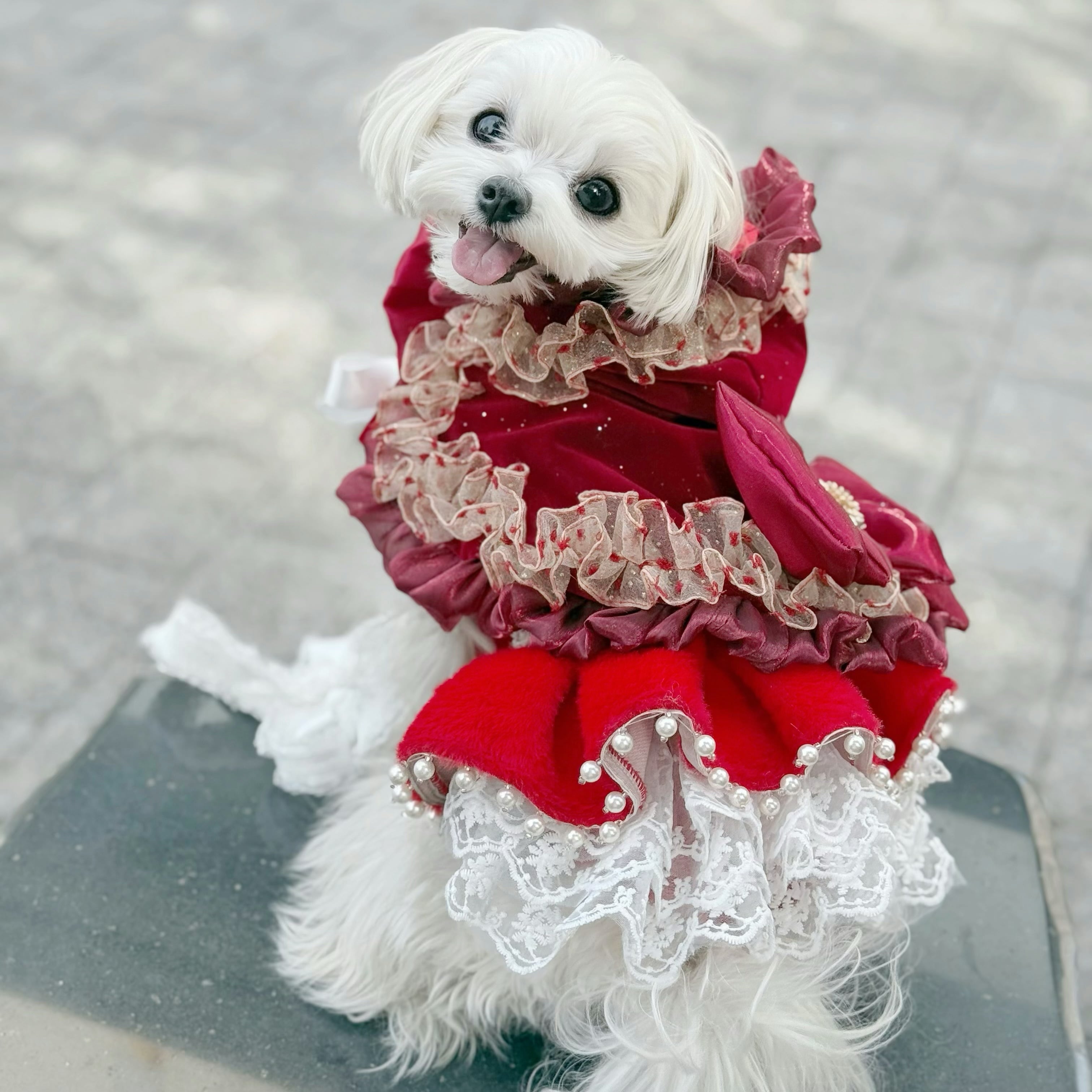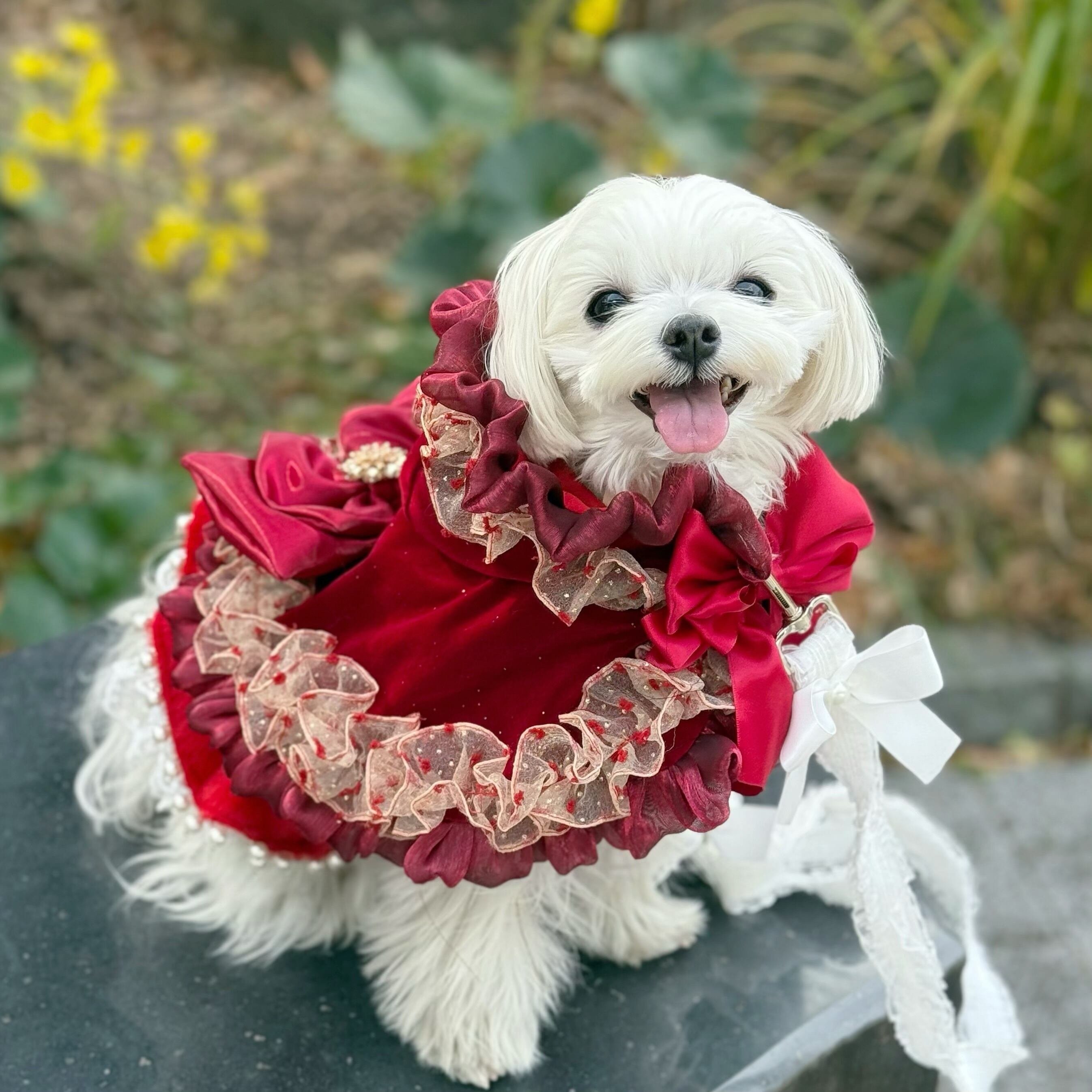 華やかさと上品さ、そして愛犬らしい可愛さを完璧に融合させたこのケープ!愛犬と一緒に「赤い魔法」でクリスマスを彩りたい気分になります♡