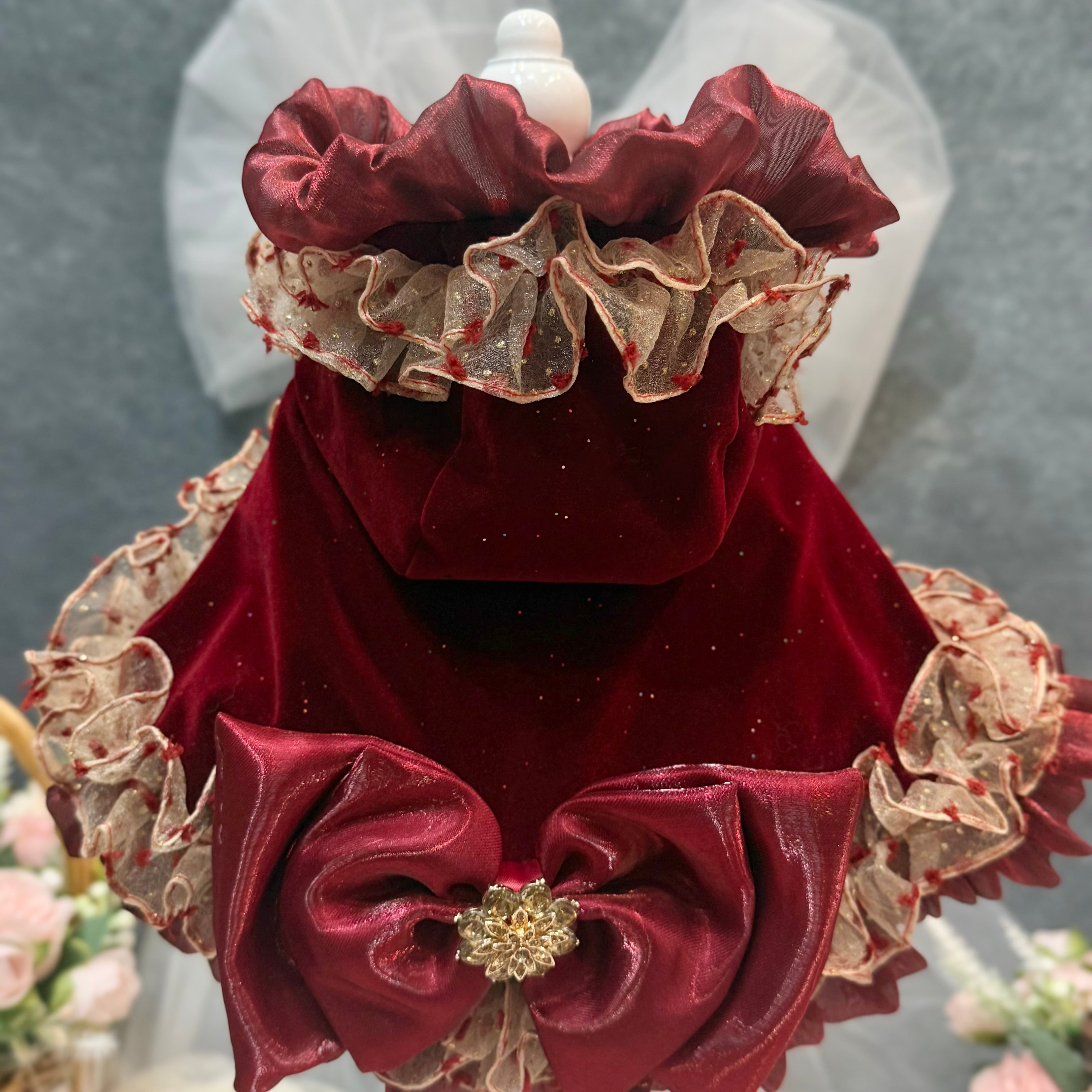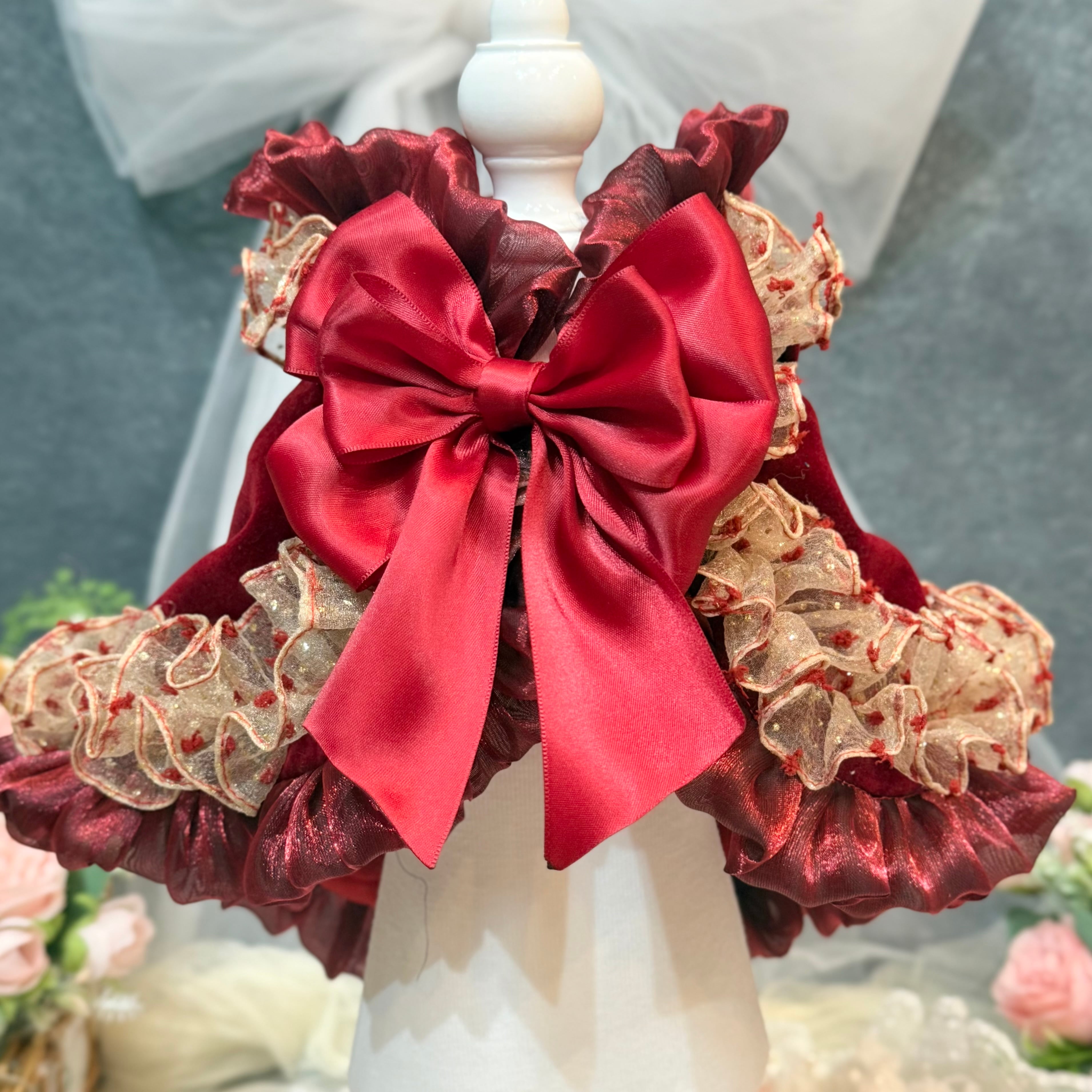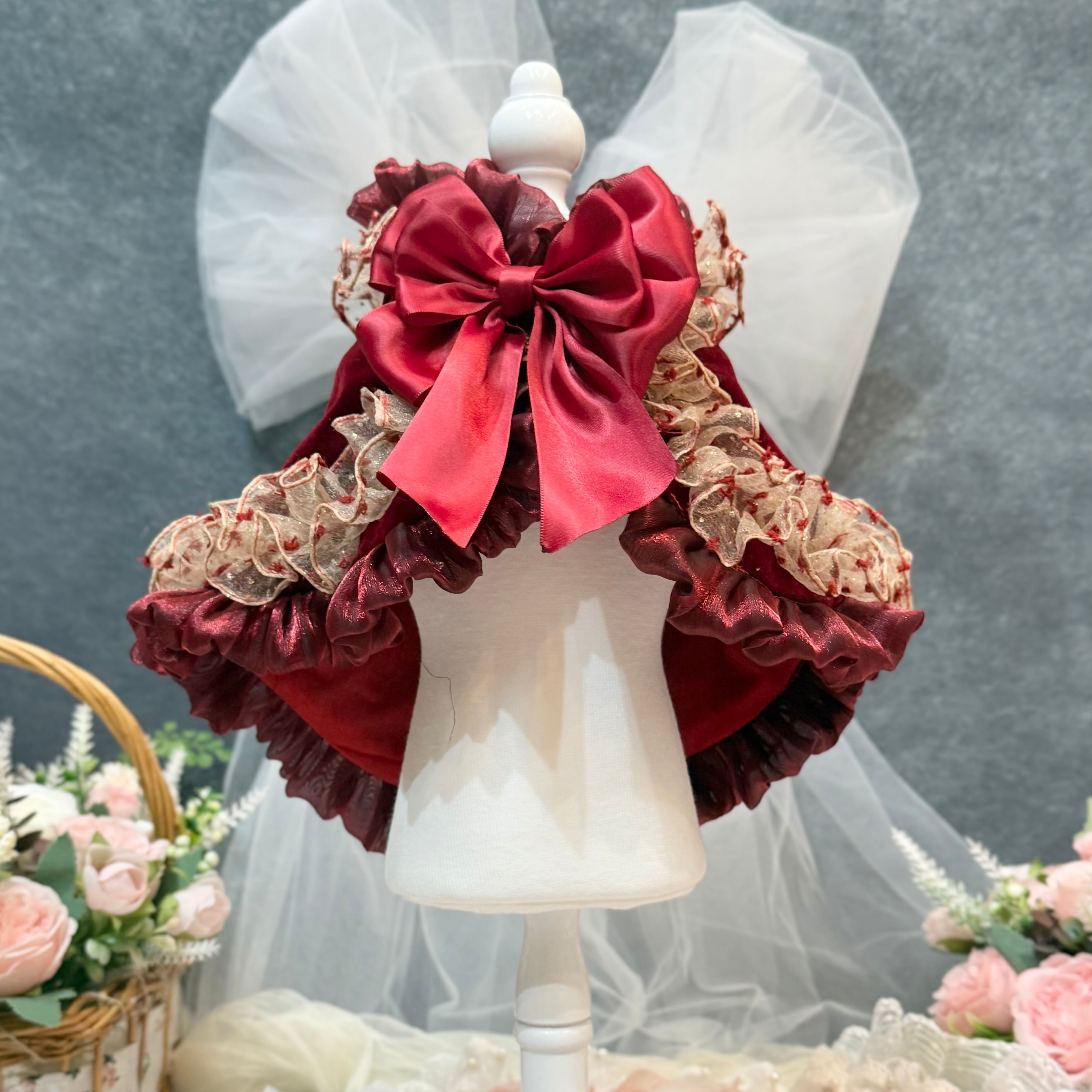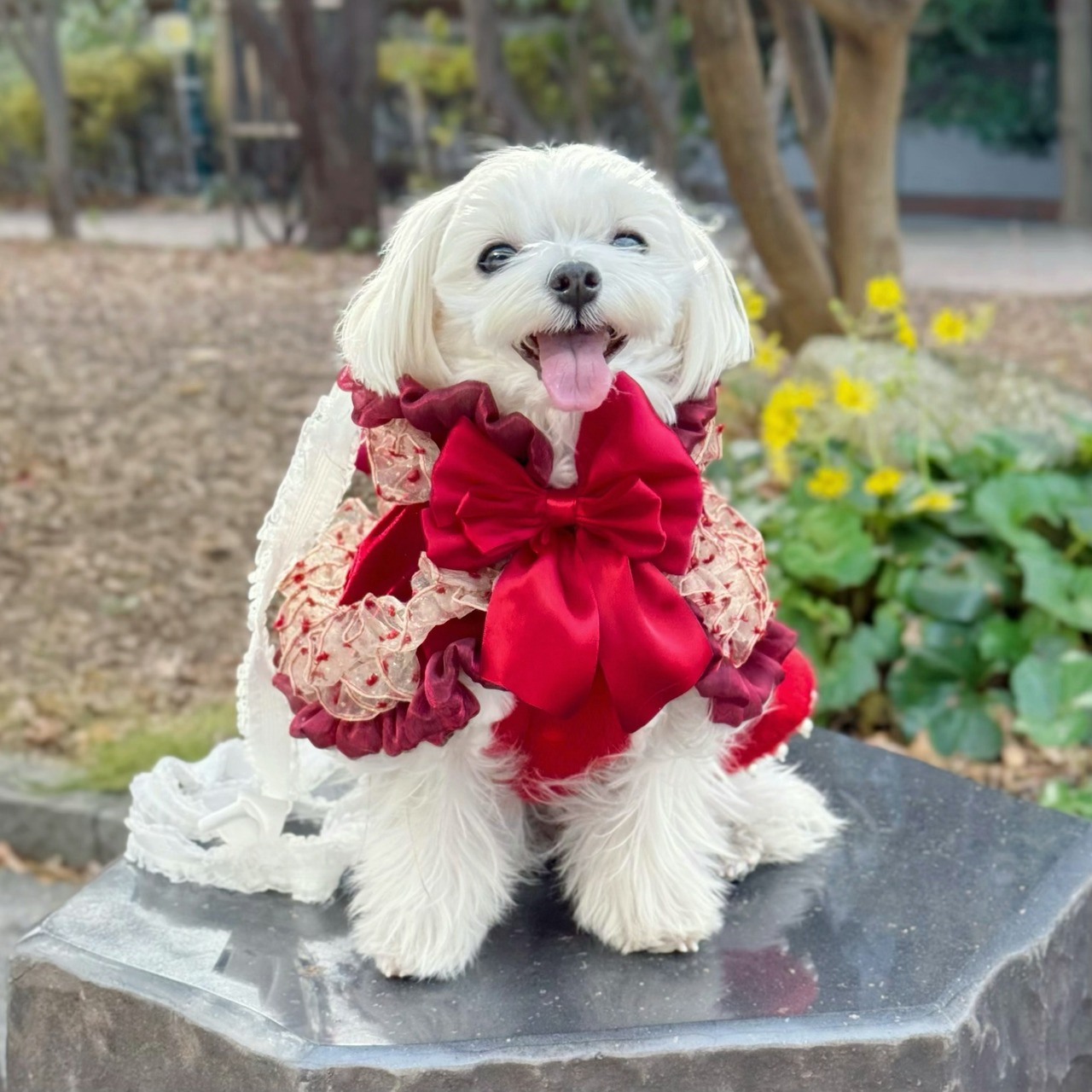 華やかさと上品さ、そして愛犬らしい可愛さを完璧に融合させたこのケープ!愛犬と一緒に「赤い魔法」でクリスマスを彩りたい気分になります♡