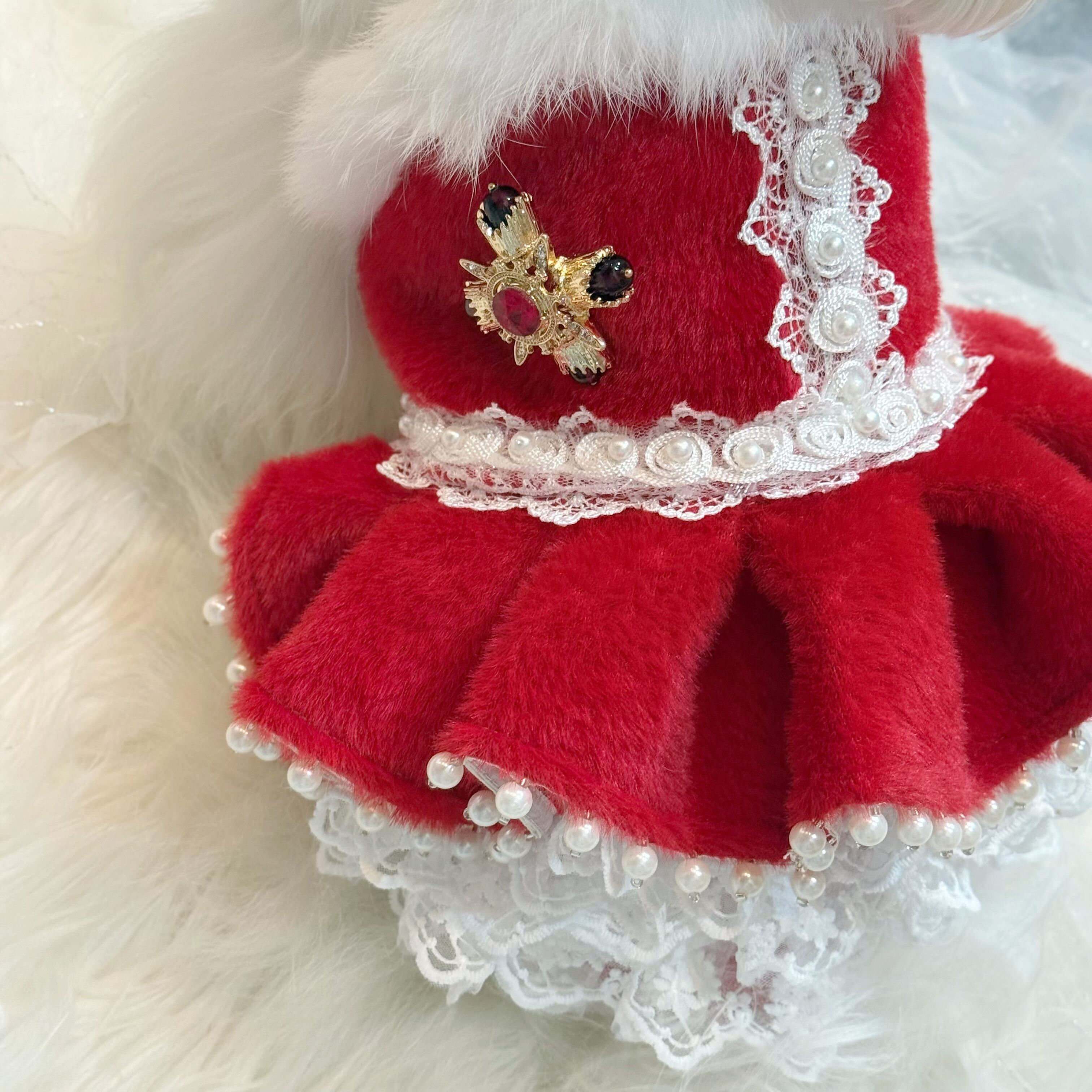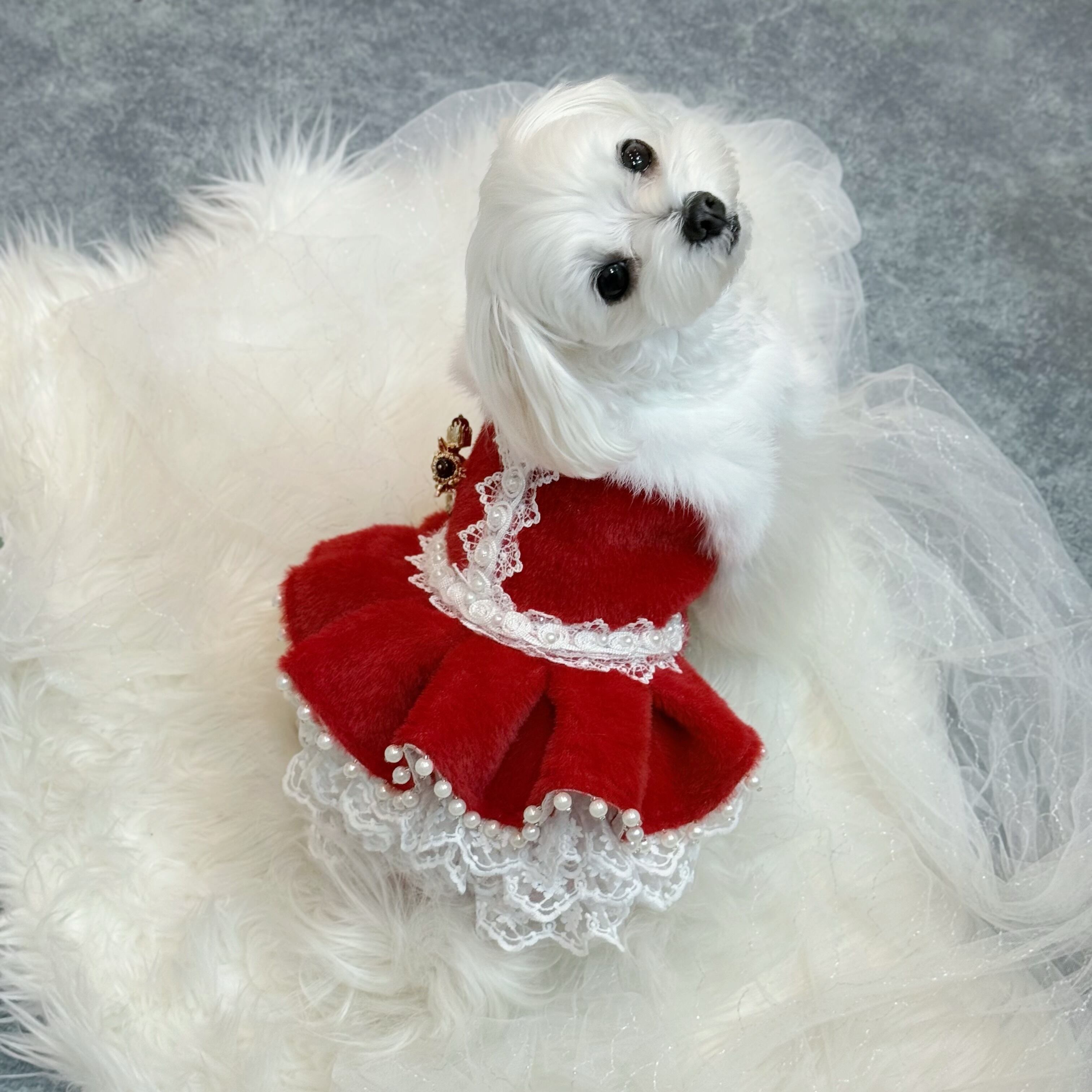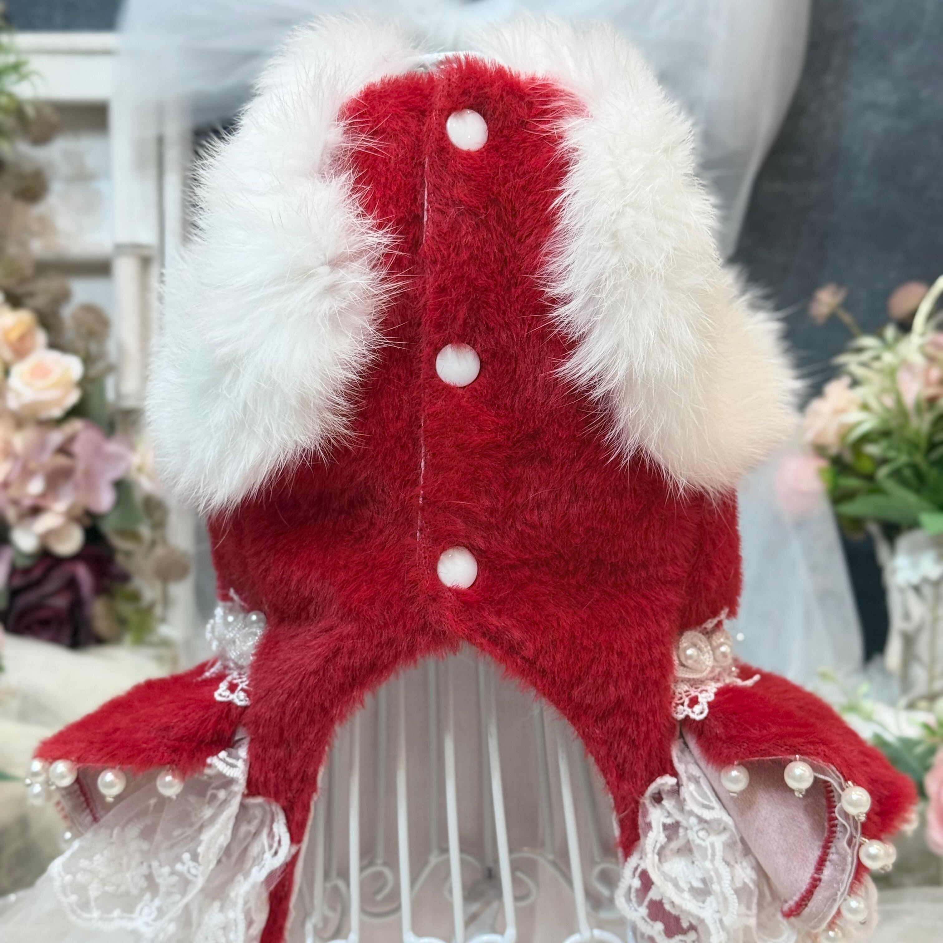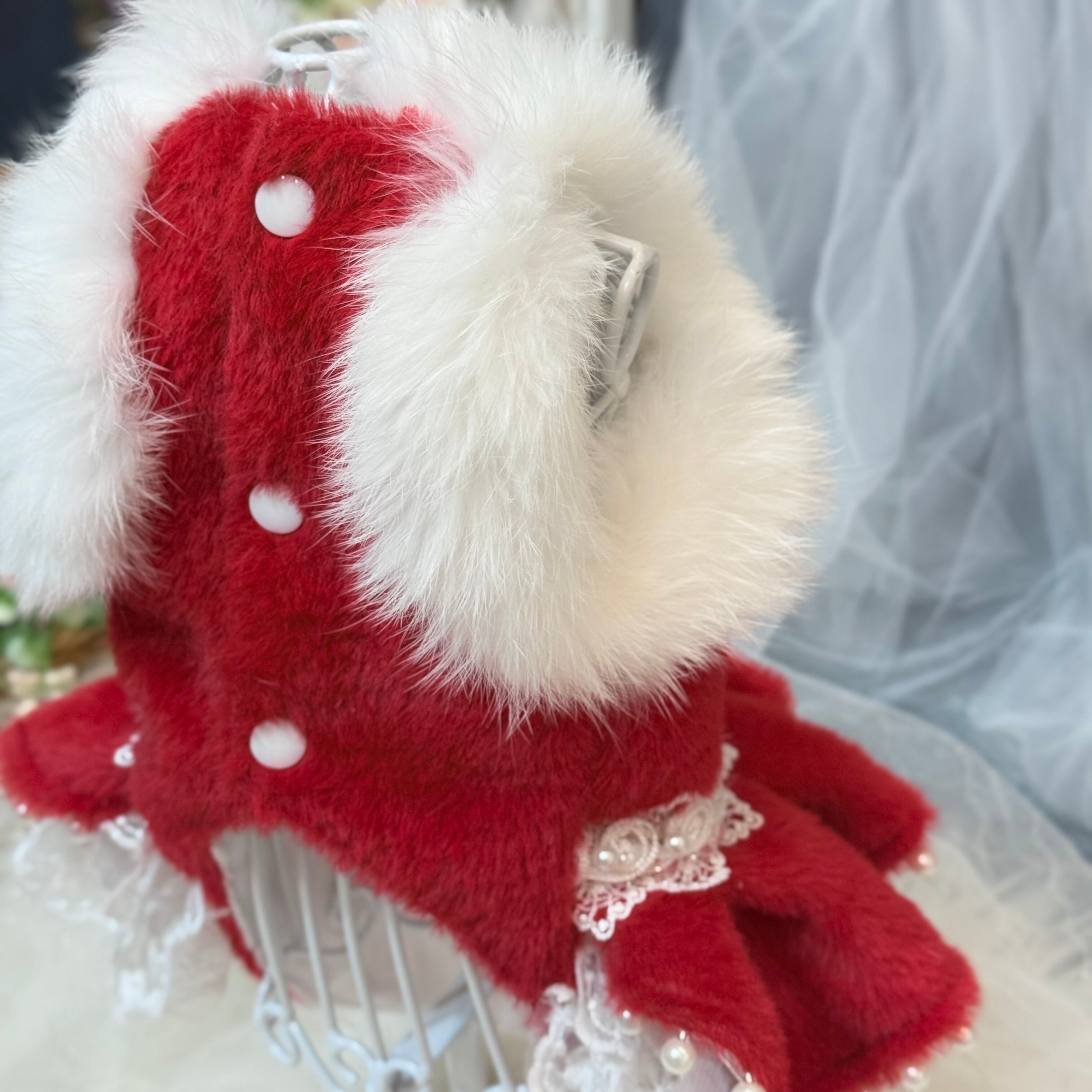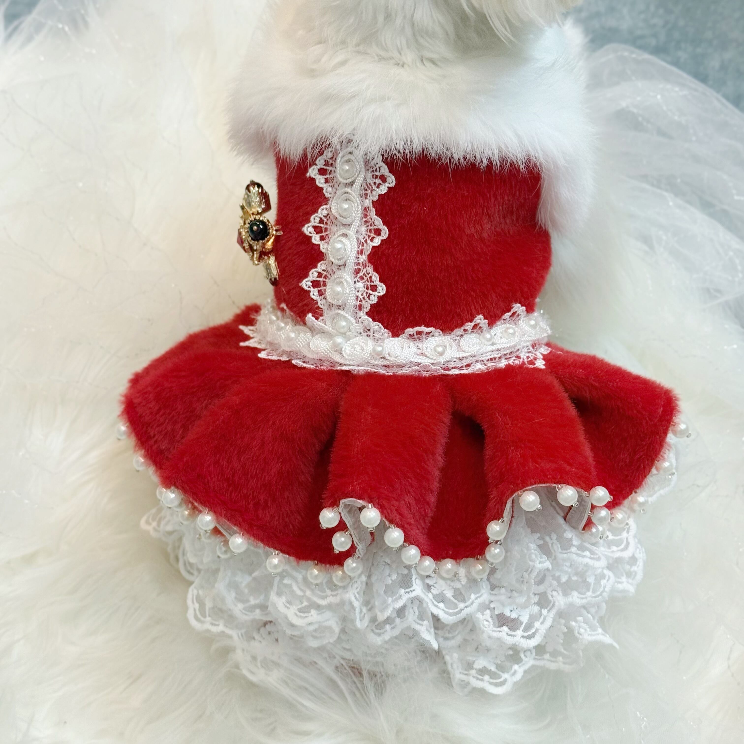 高級なレースをたっぷり使ってふんわりと膨らむボリューム感を演出✨ファーの豪華さだけでなく、愛犬の愛らしさも存分に引き出します!