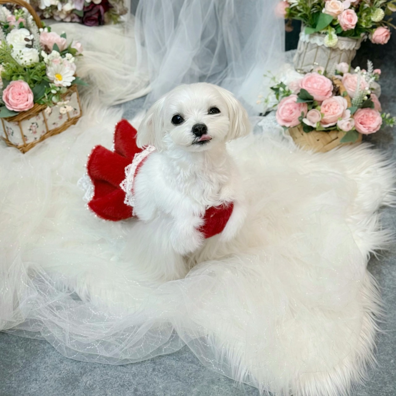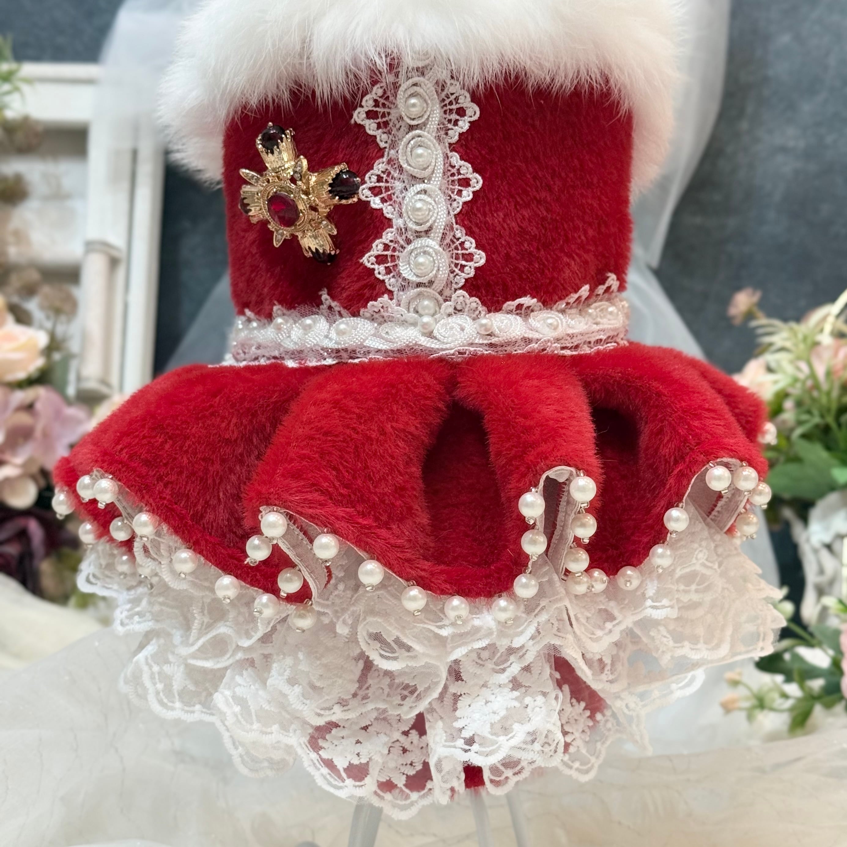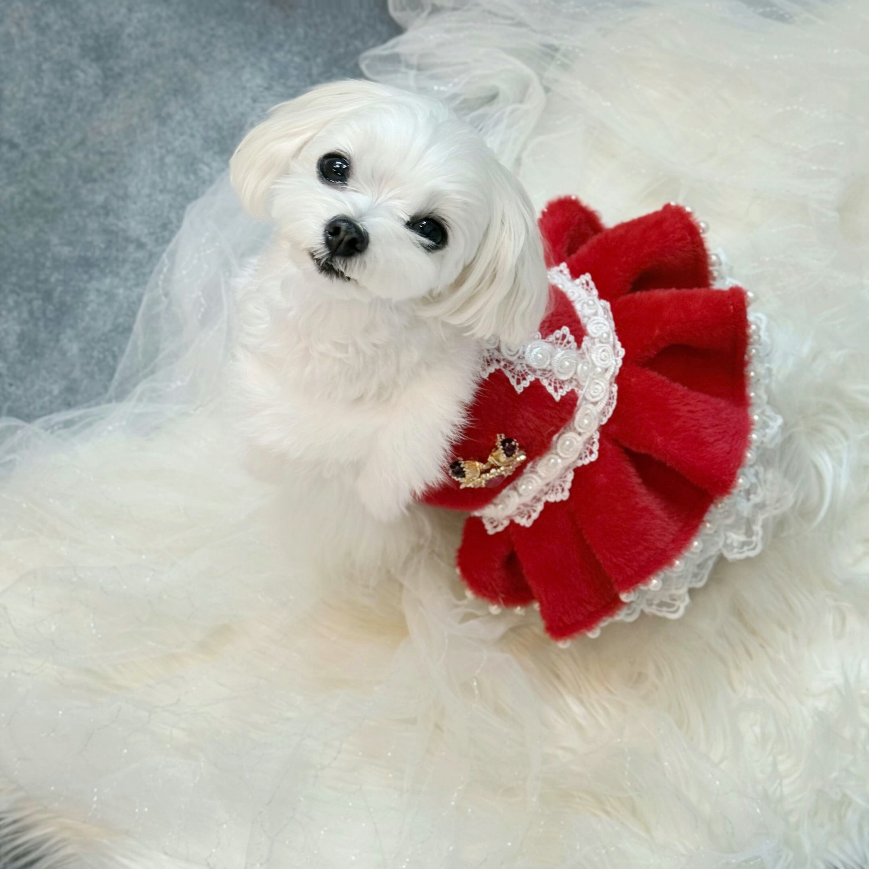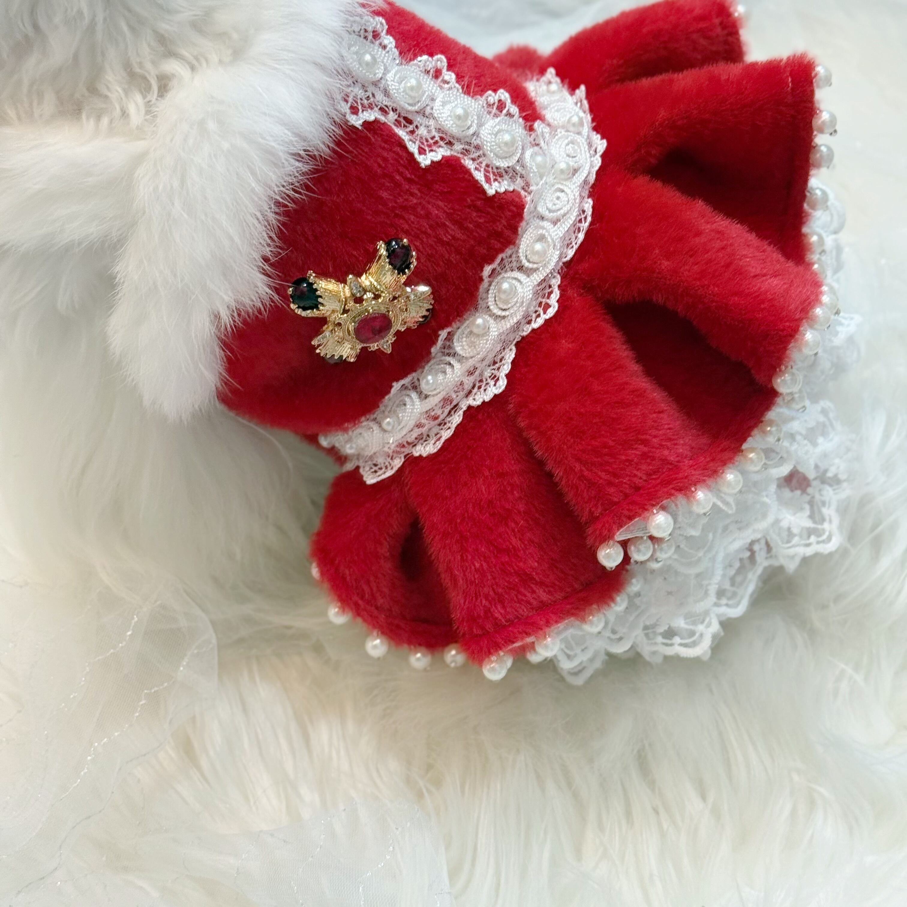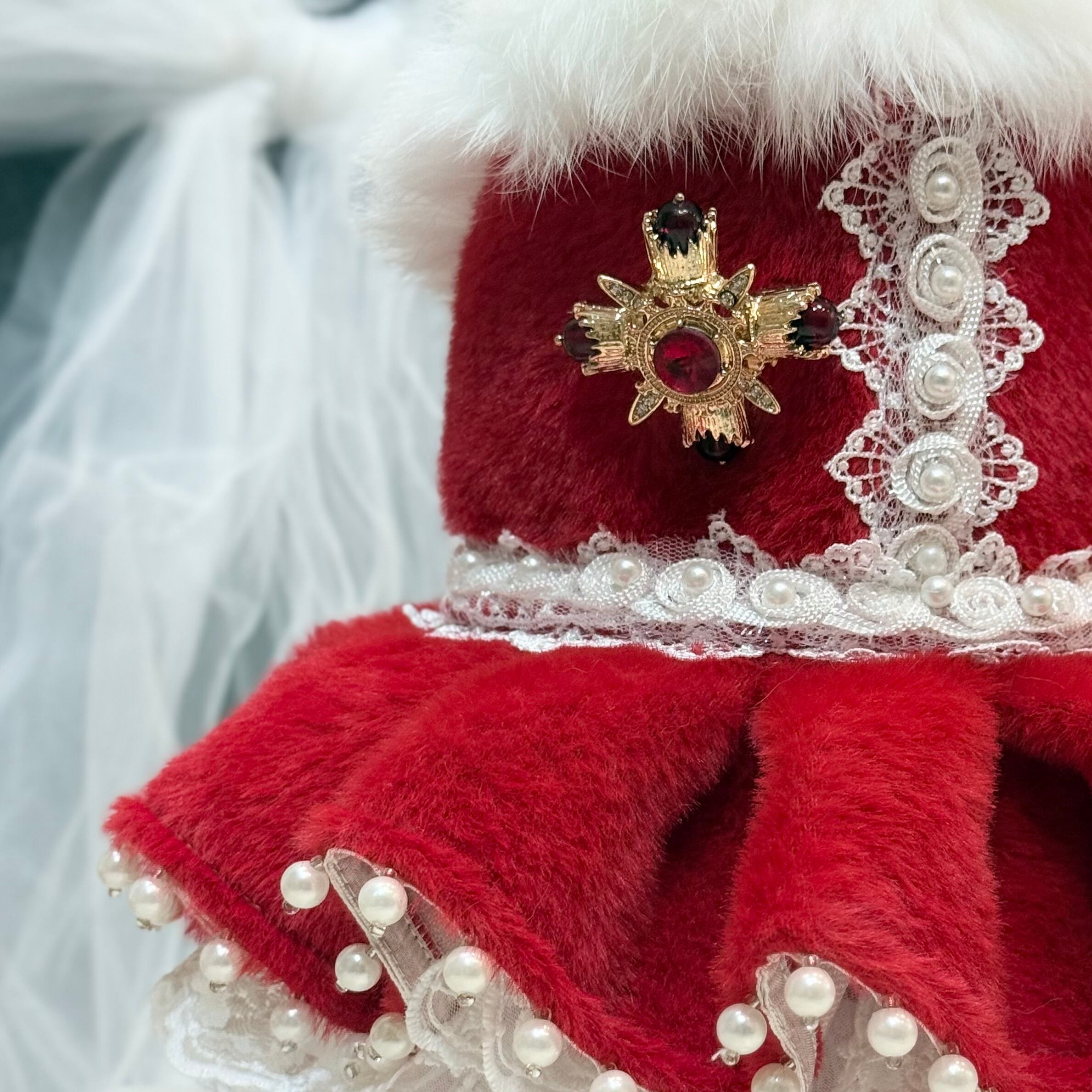 高級なレースをたっぷり使ってふんわりと膨らむボリューム感を演出✨ファーの豪華さだけでなく、愛犬の愛らしさも存分に引き出します!