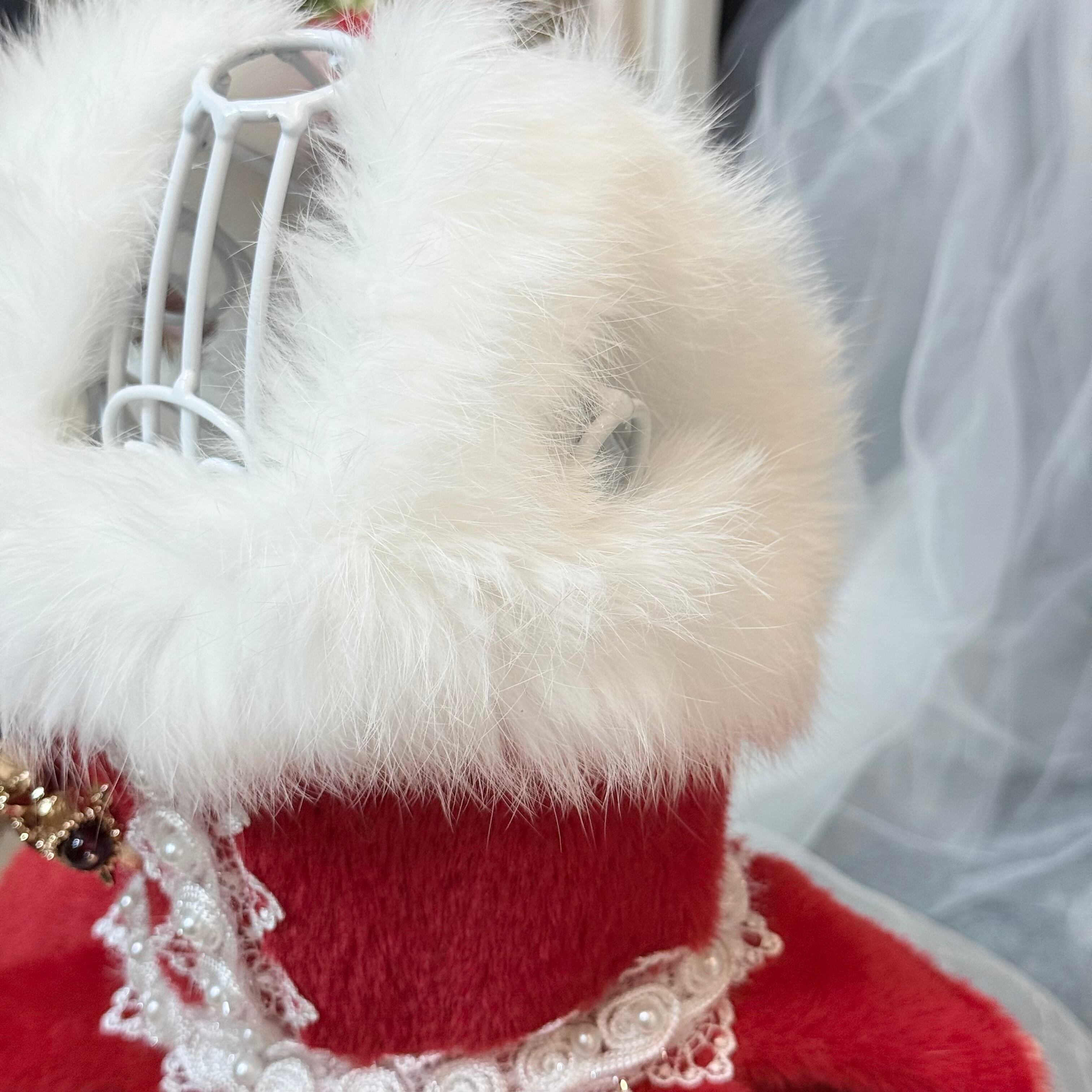 スカートの裾には上品な白いパールを散りばめ、光を受けると繊細に輝く様子が、ファーの温かみと調和して華やかさをプラスします✨