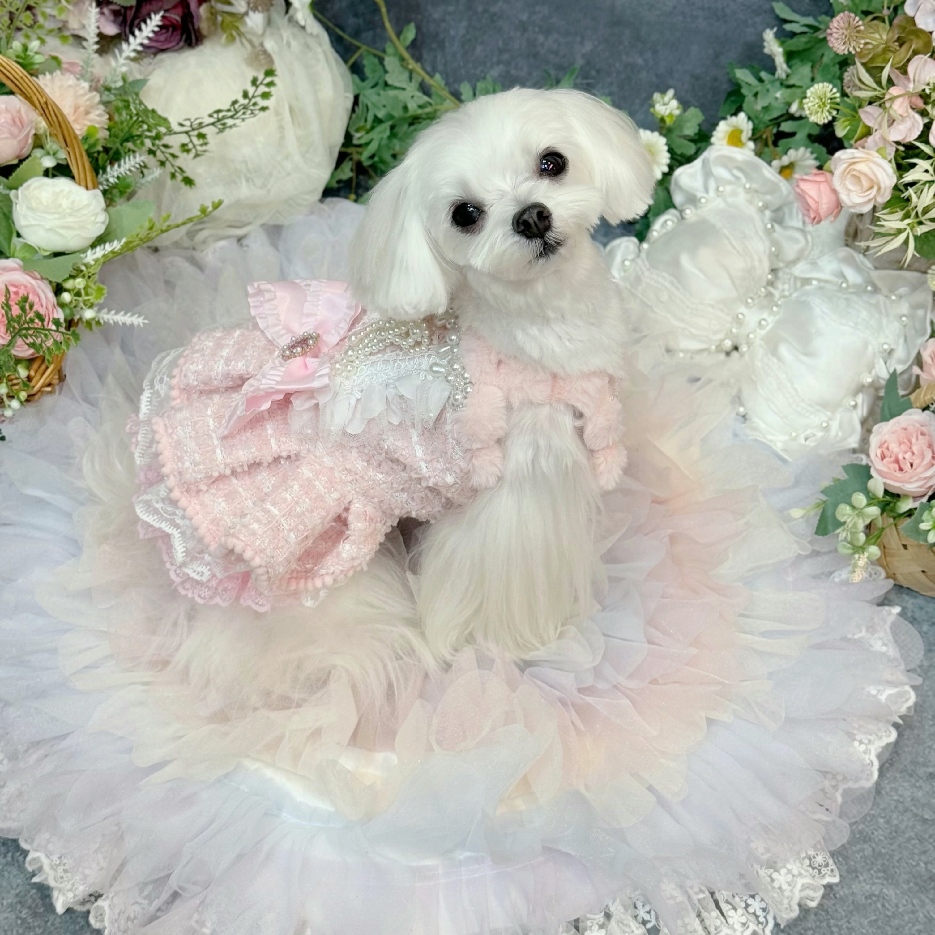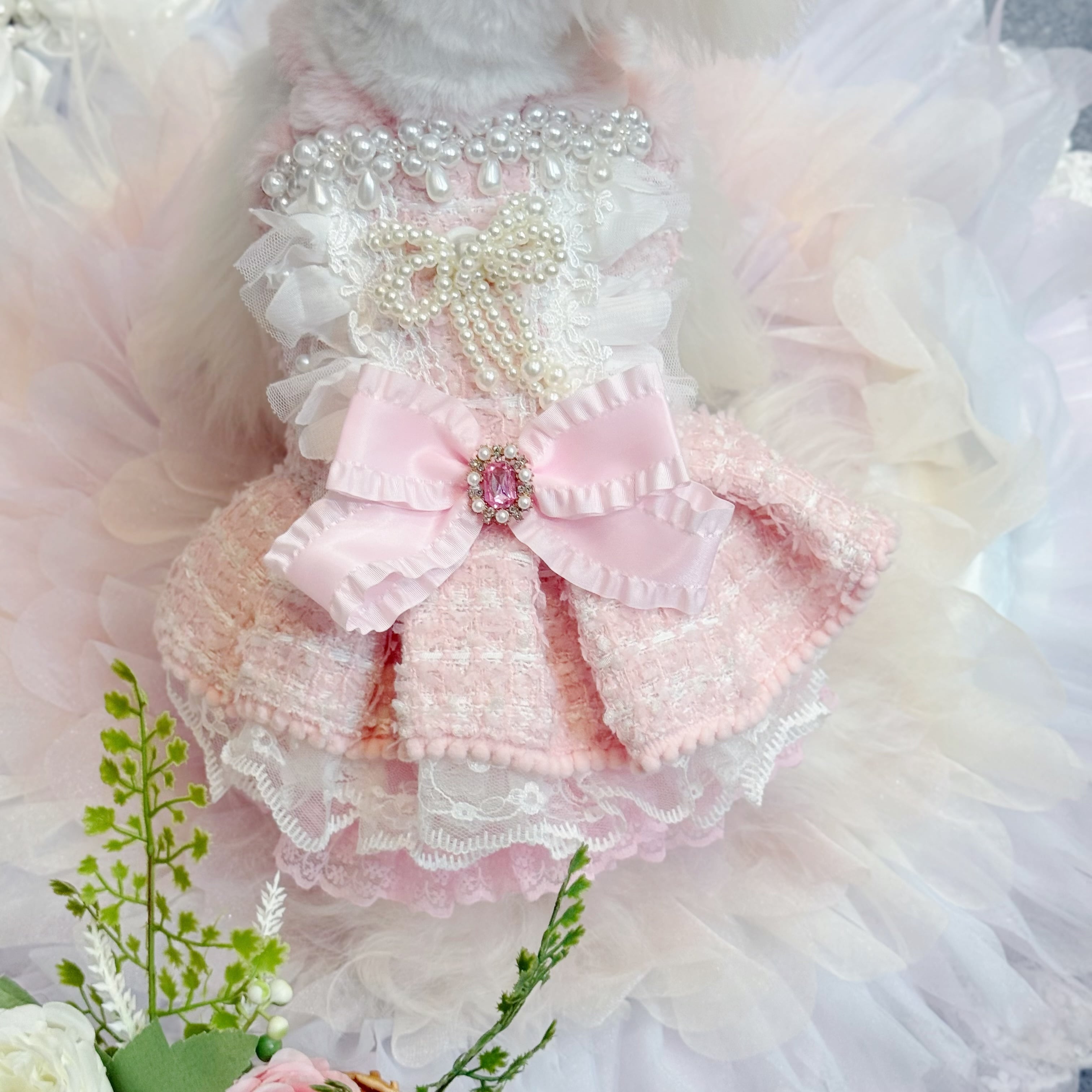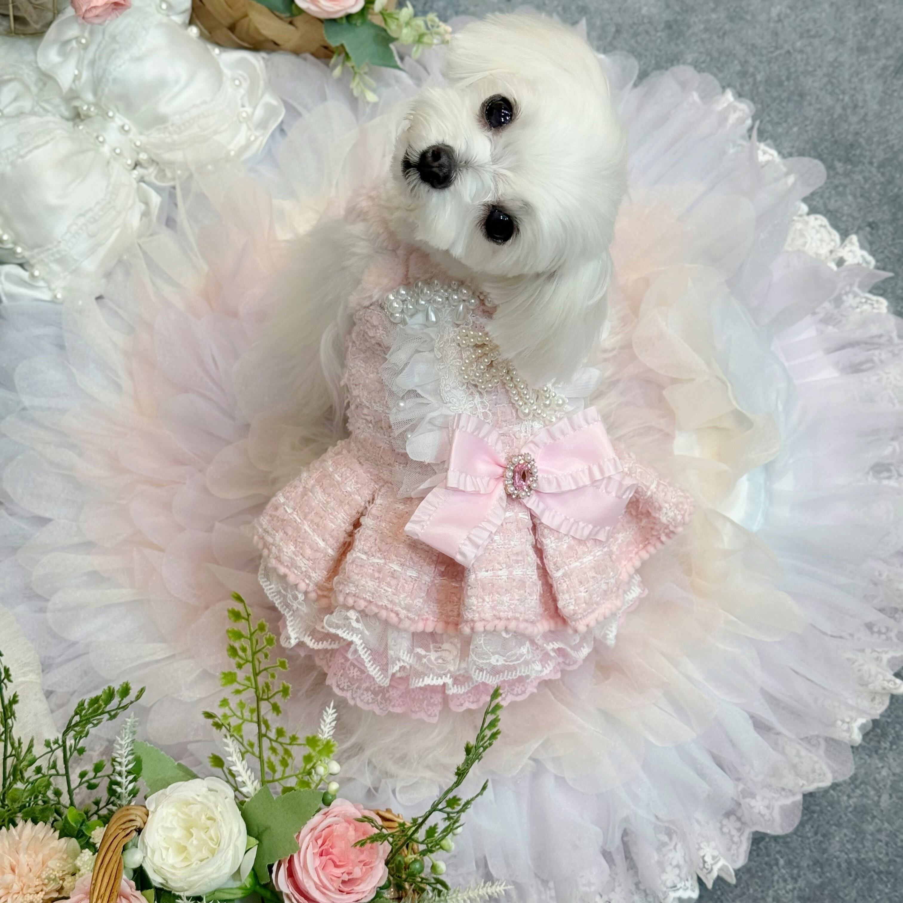 スカート部分はレースを重ねてボリューム感を出しているので、愛犬が走り回っても形が崩れにくく、プリンセスらしい雰囲気をキープできます✨