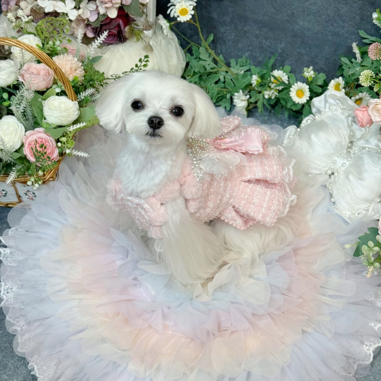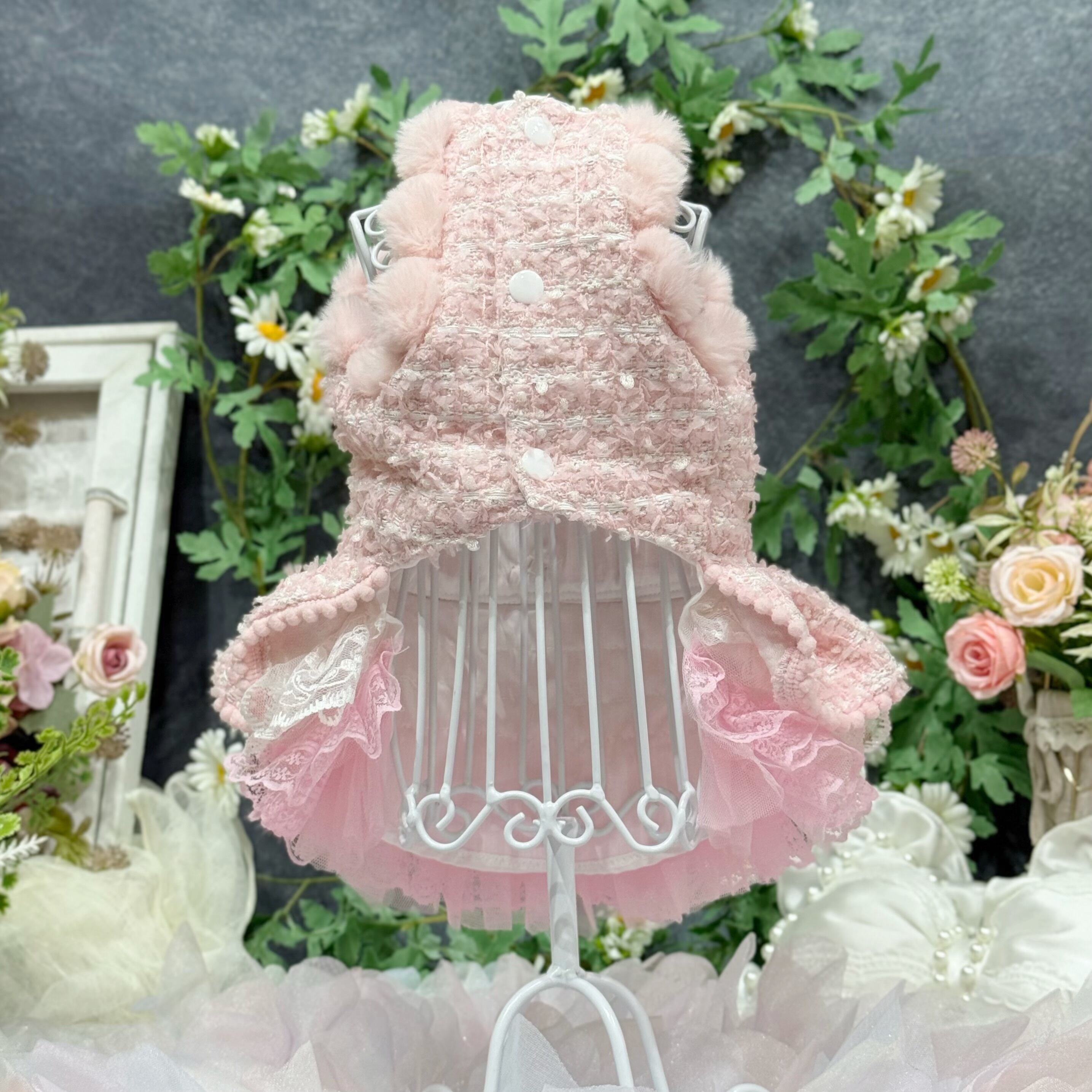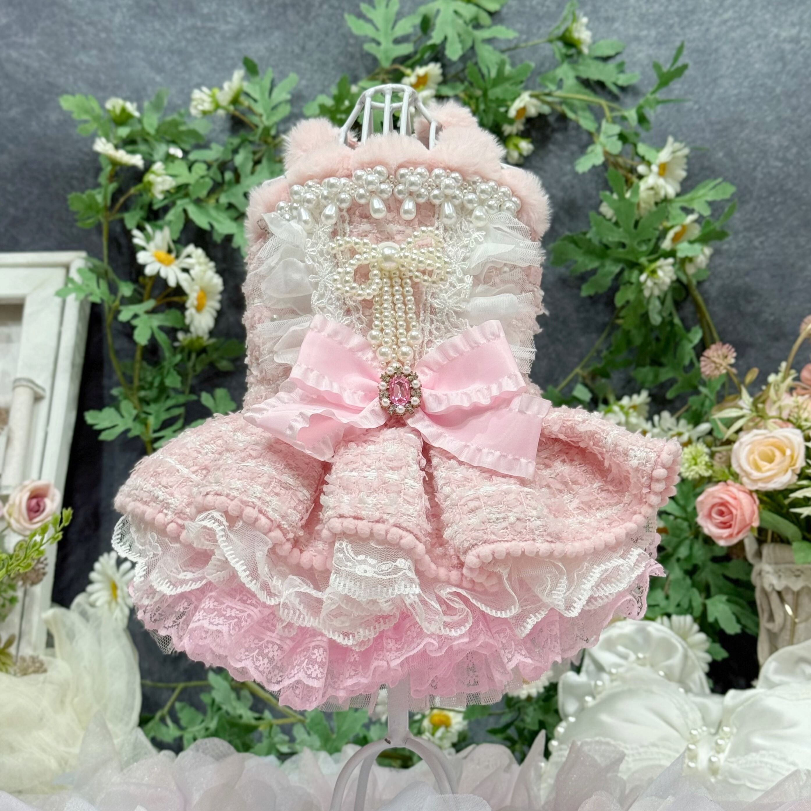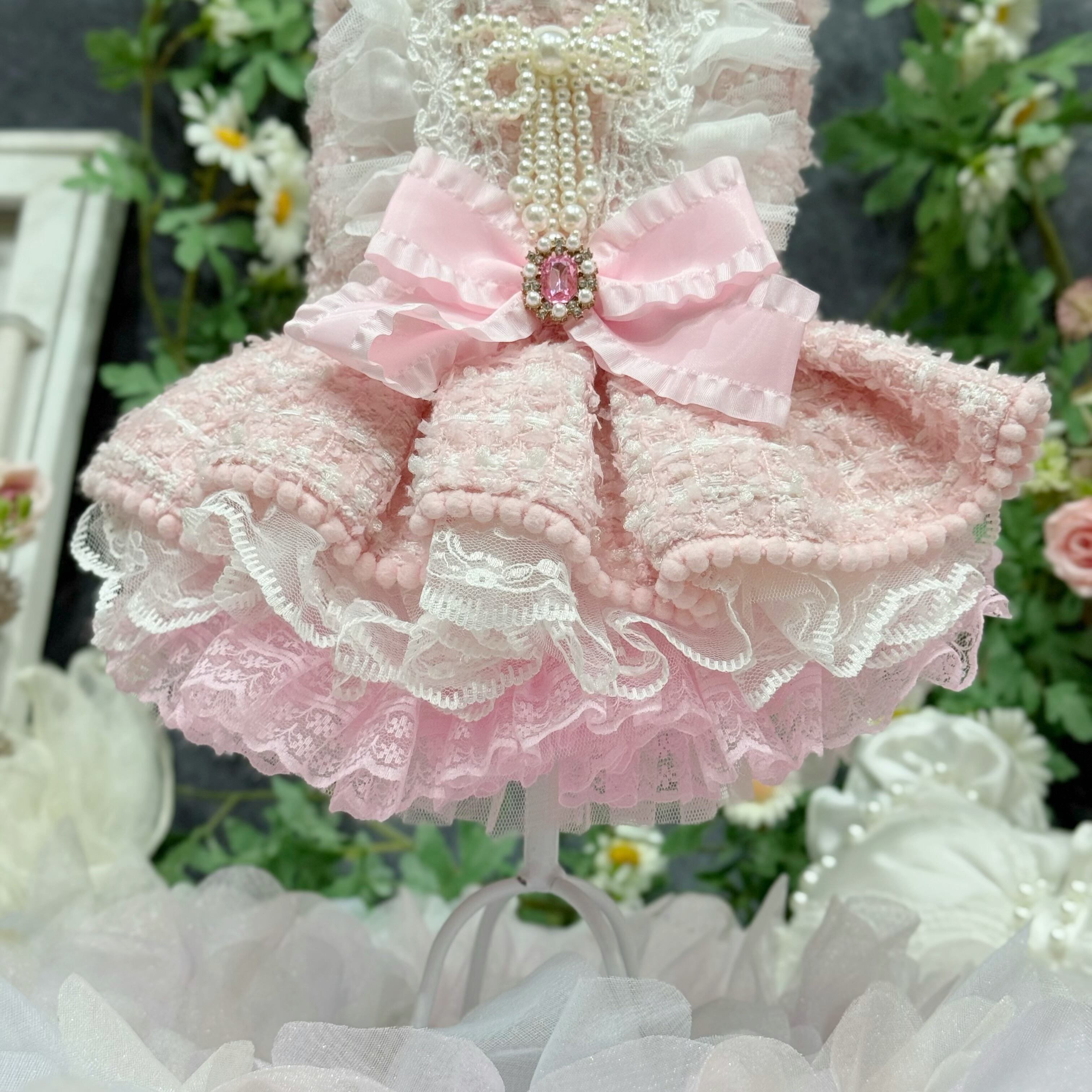 スカート部分はレースを重ねてボリューム感を出しているので、愛犬が走り回っても形が崩れにくく、プリンセスらしい雰囲気をキープできます✨