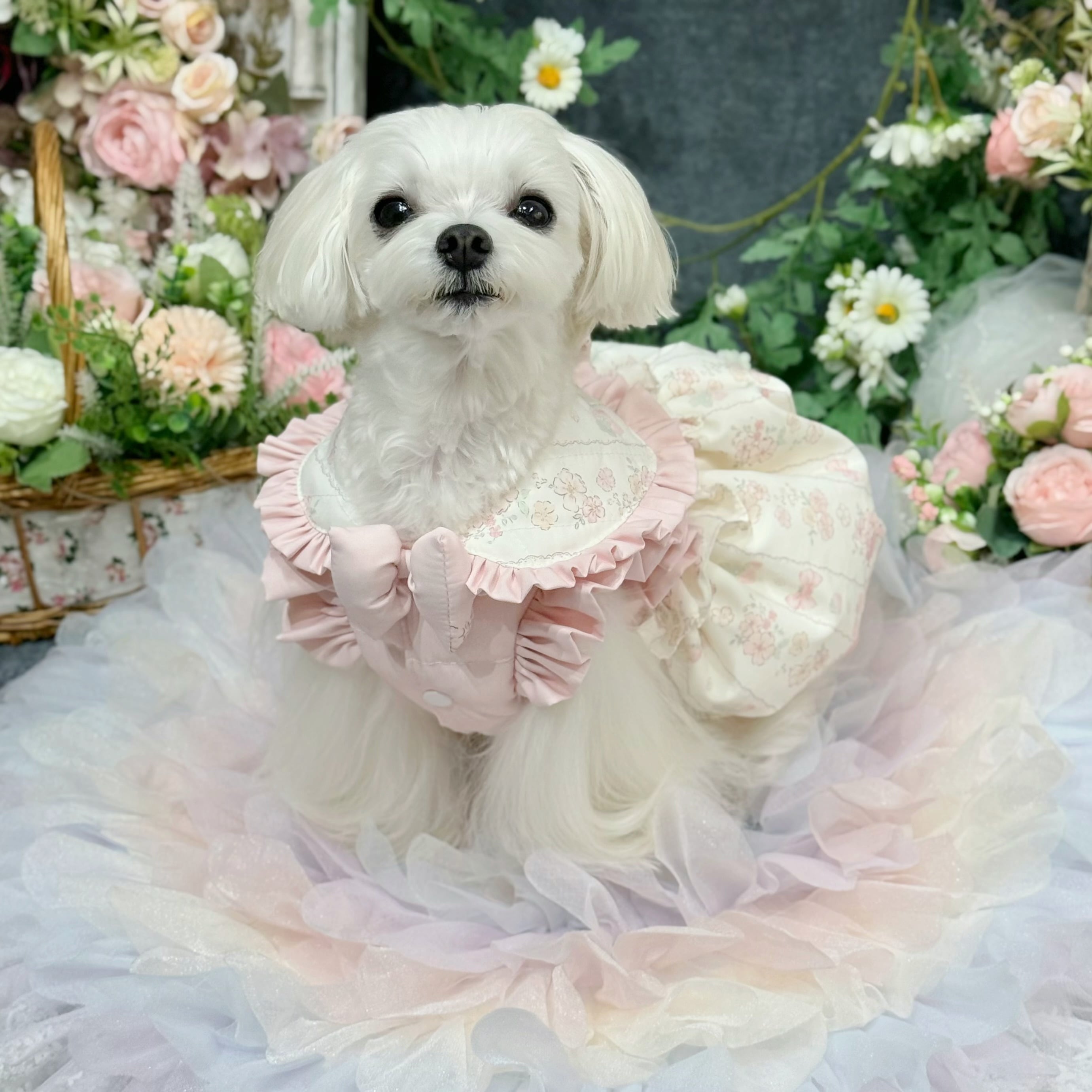 フリルつきのセーラーカラーは、愛犬の可愛らしさをさらに引き立て、バルーンスカートのシルエットもとびきりキュート!