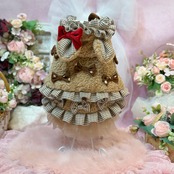 ドレスはたっぷりのフリルとリボンを贅沢に使用し、キュートさを最大限に引き出しています! スカート部分はチュールを重ねてボリューム感を出し、歩くたびにふわりと揺れる姿は見ているだけで心が躍ります❤︎
