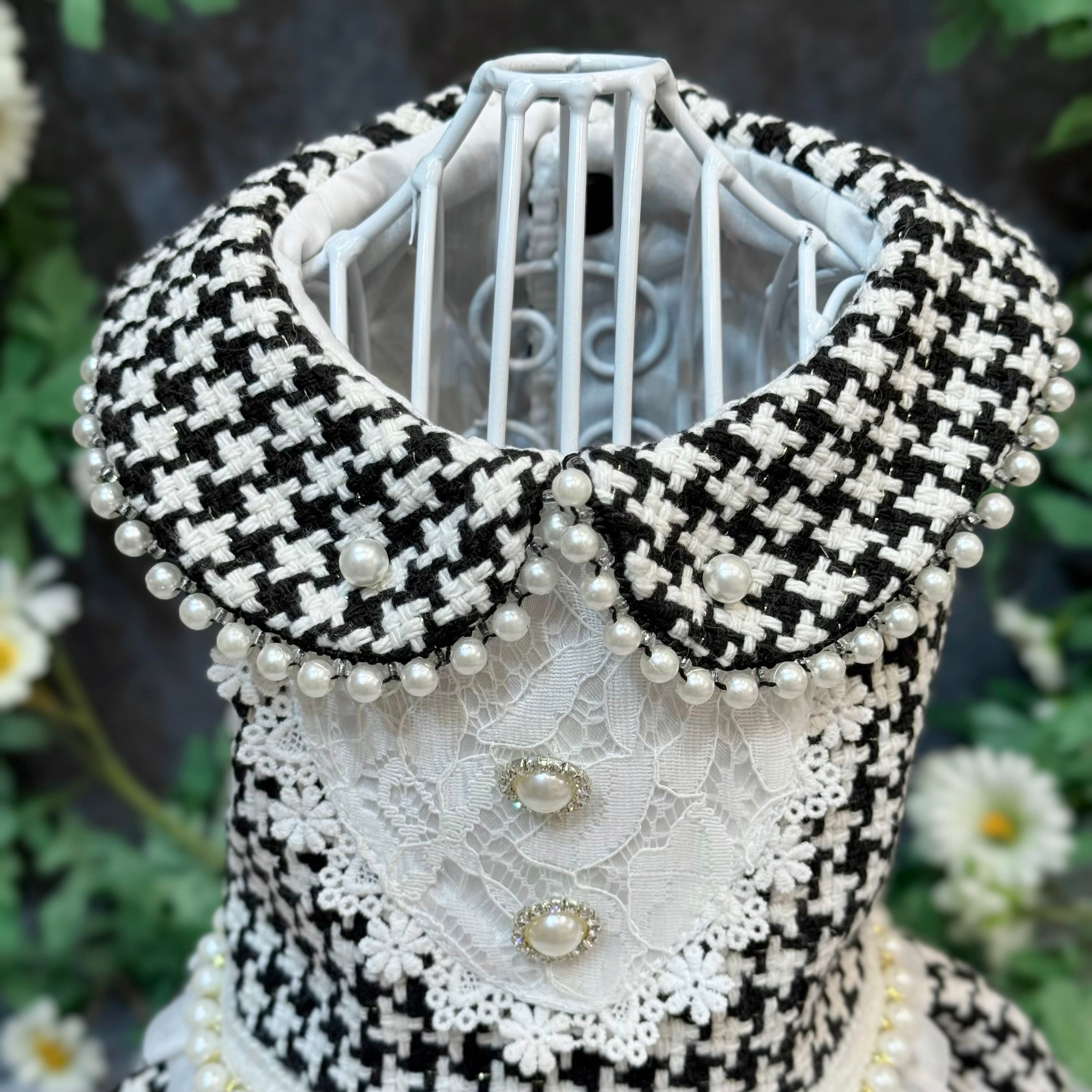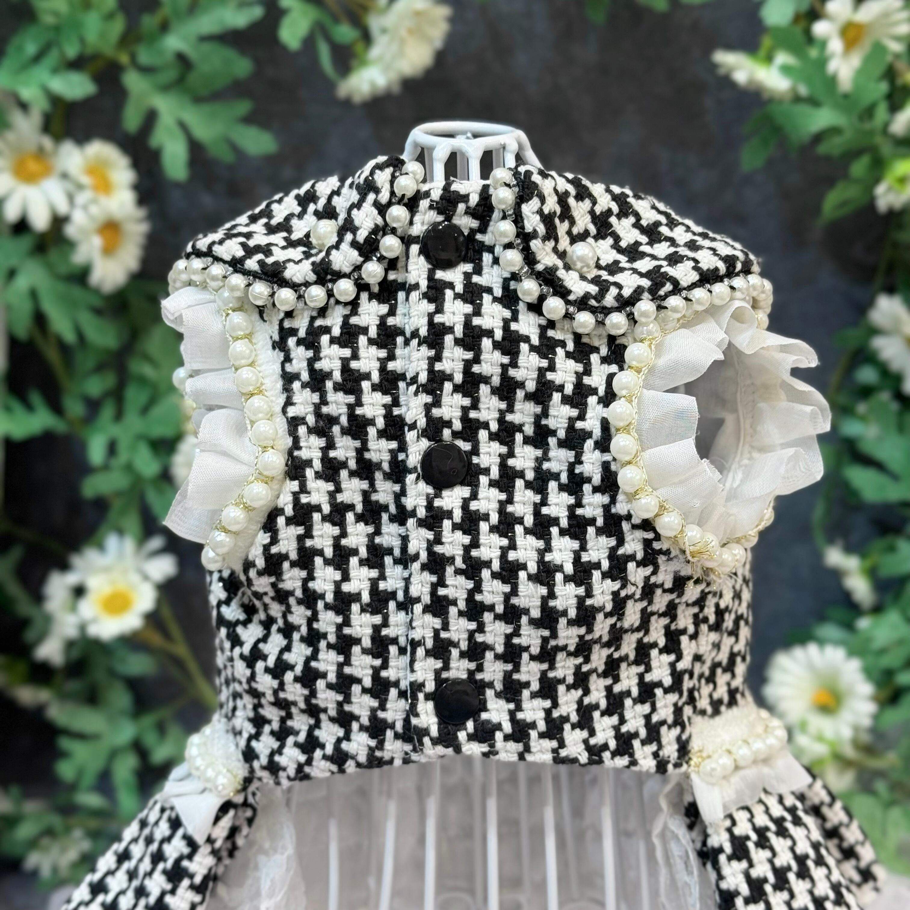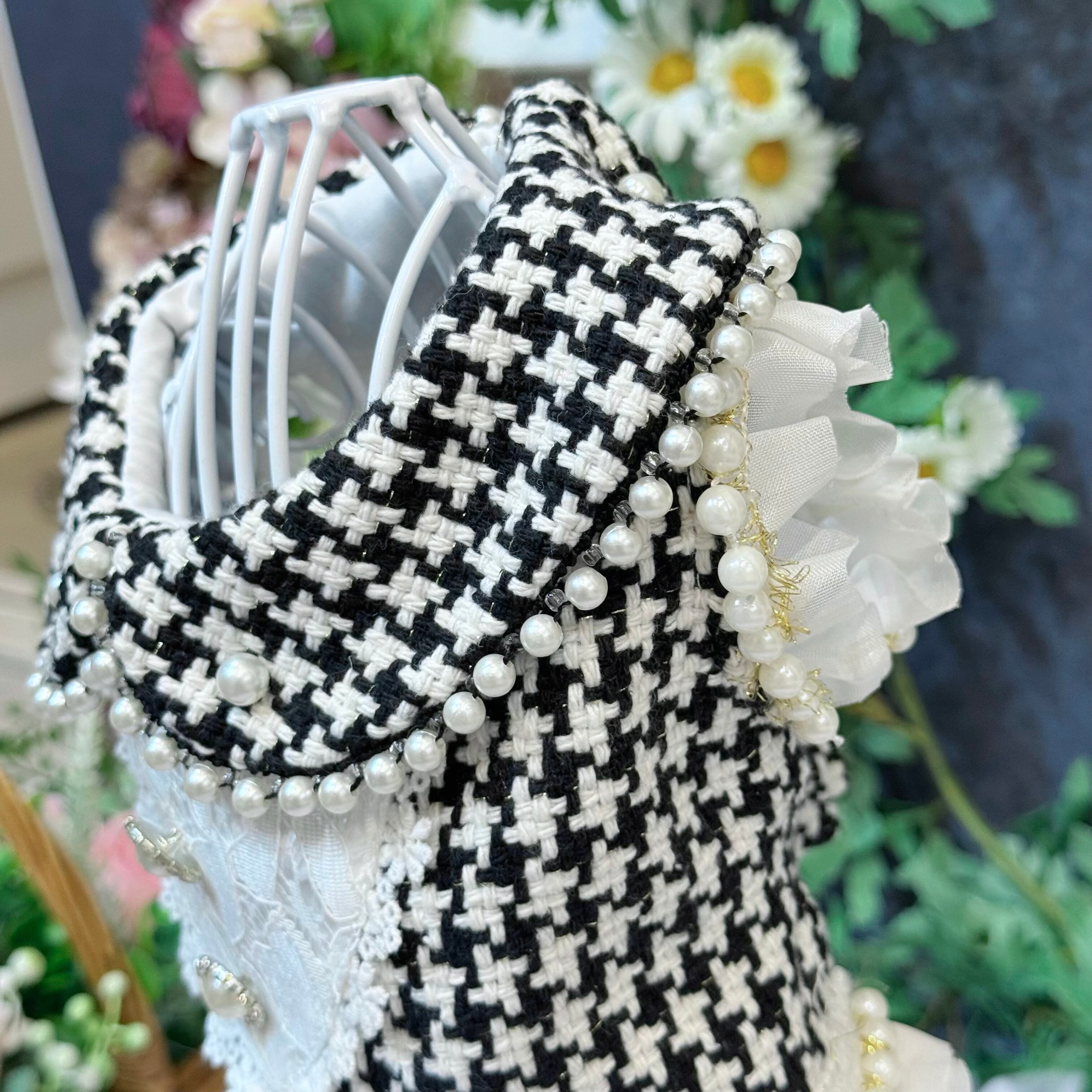 4割以上のウールが入っているブラック×ホワイトの千鳥柄ツイード生地を贅沢に使用し、
